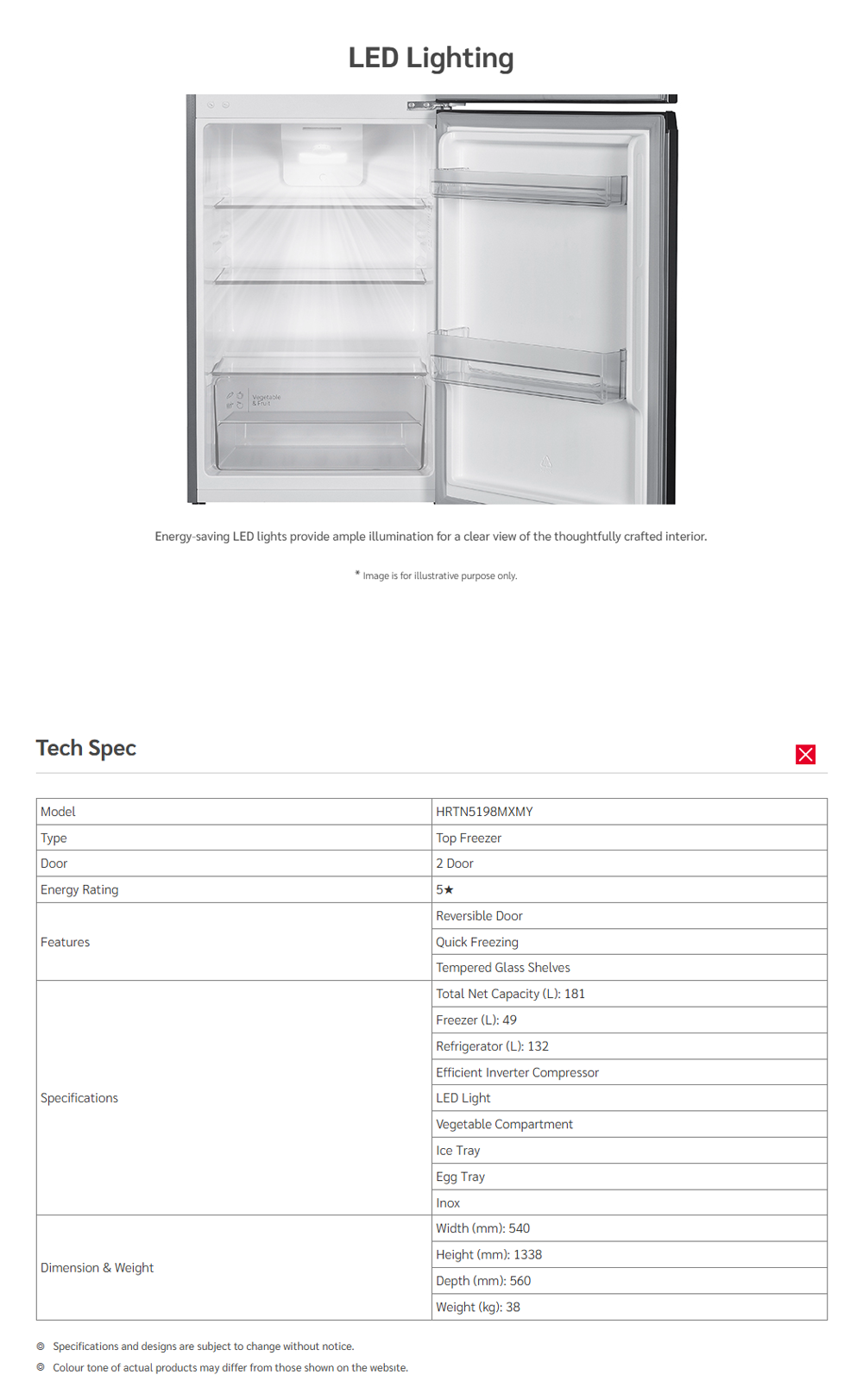 • LED Lighting (Refrigerator Compartment)