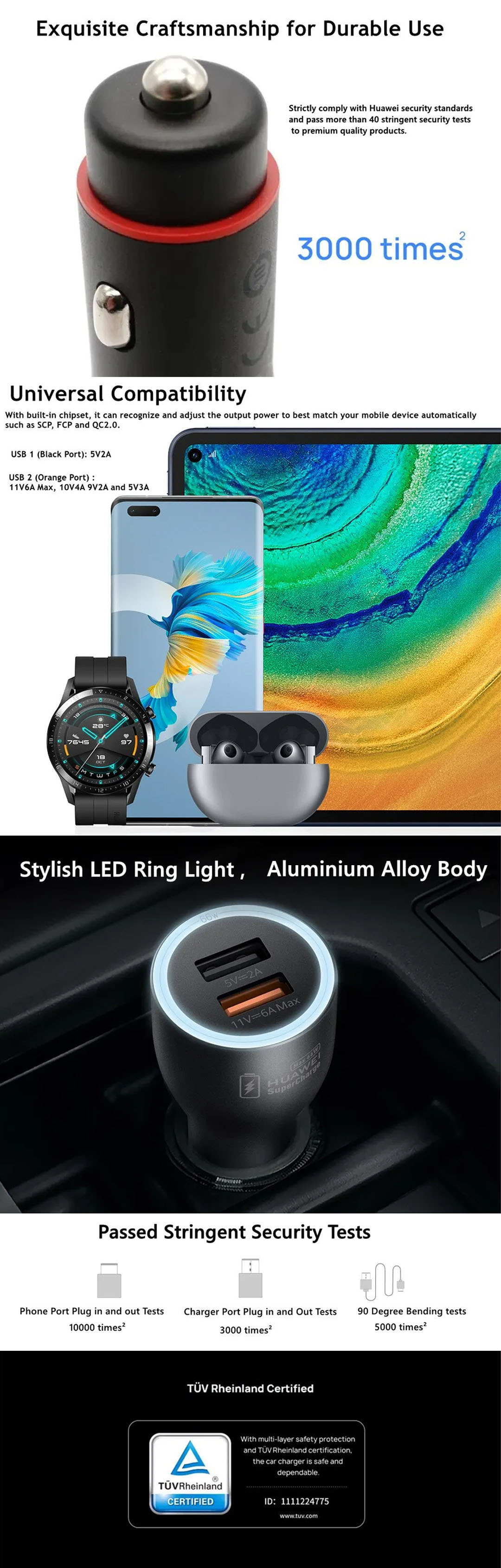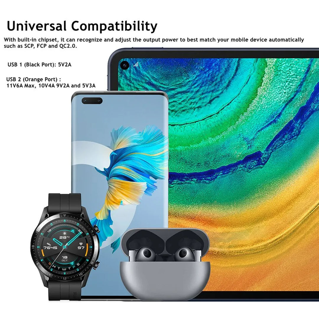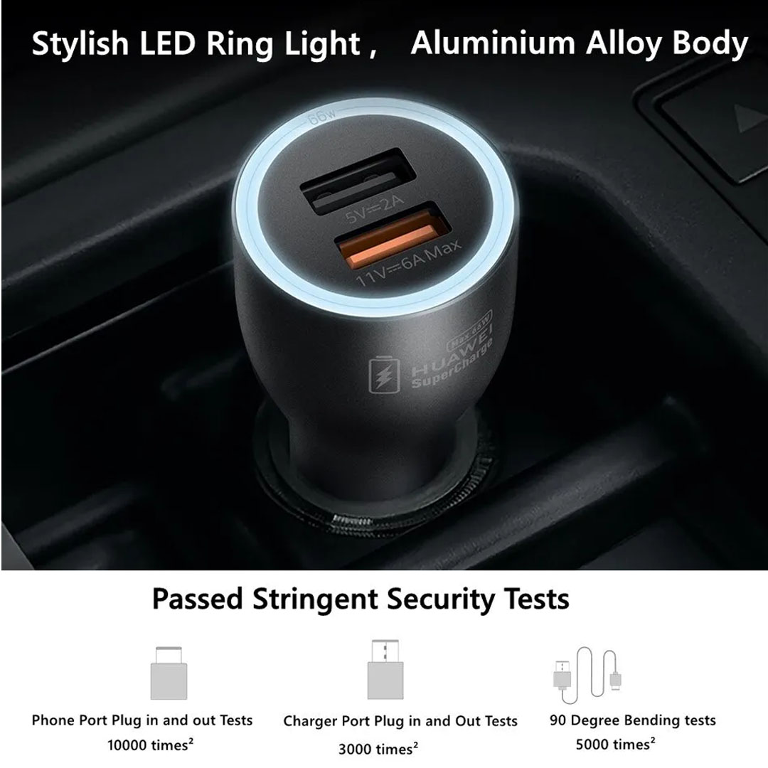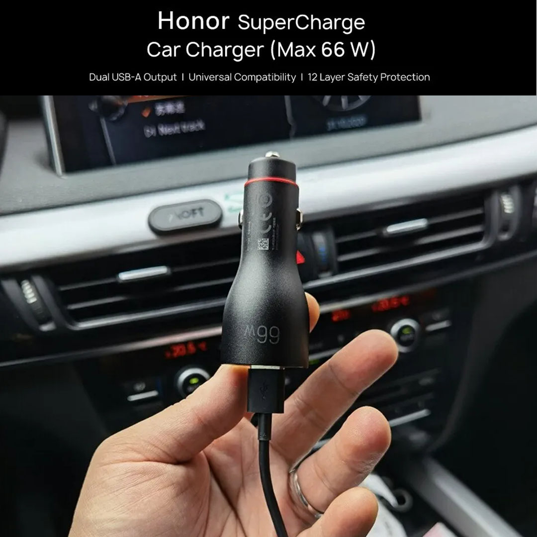 HONOR 66W SuperCharge Car Charger (Max 66W) HV-110600C01 | Dual USB Output Ports | Universal Compatibility | Stylish LED Ring Light | Charger with 6 Months Warranty