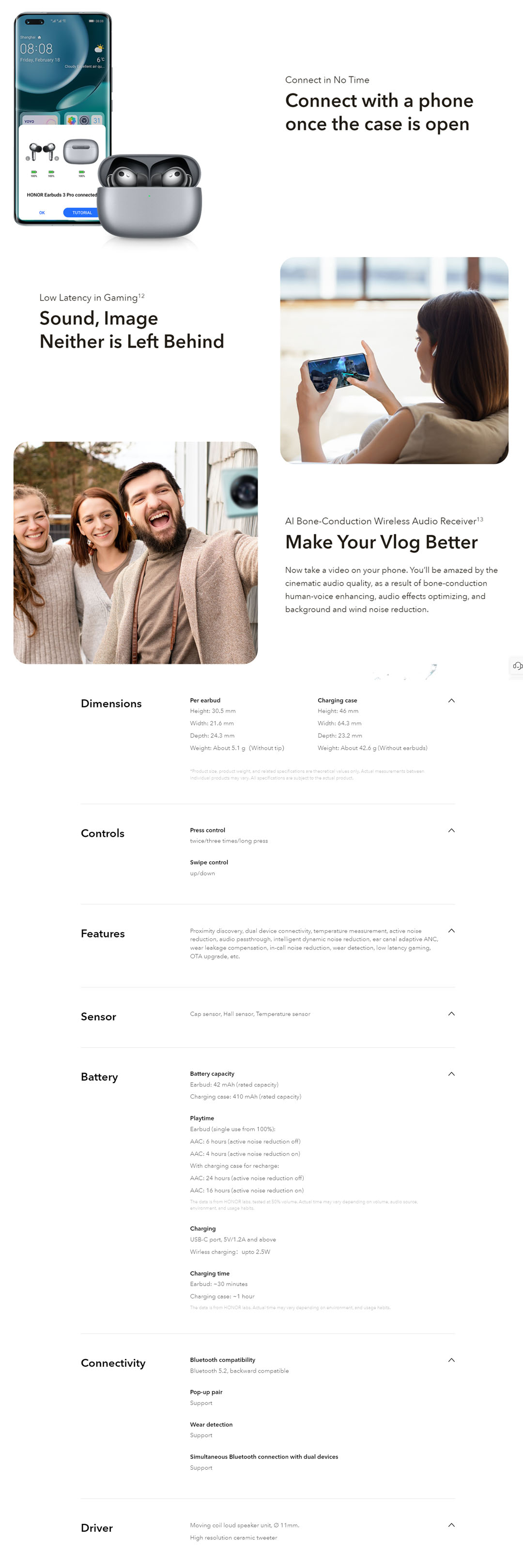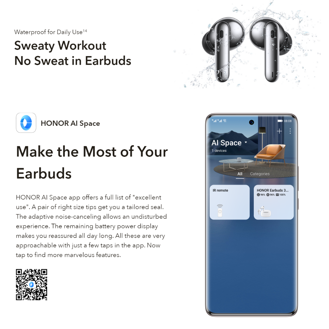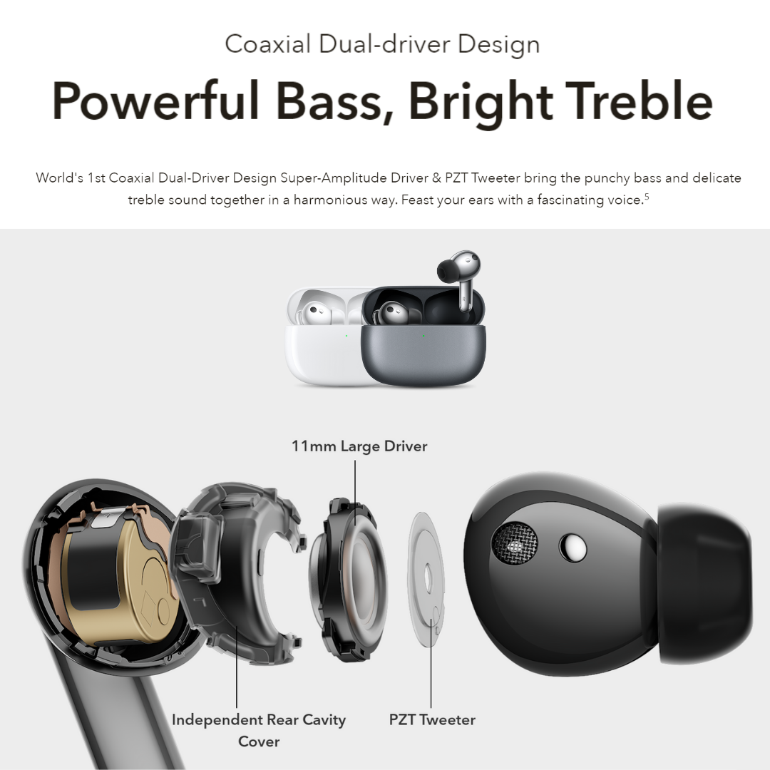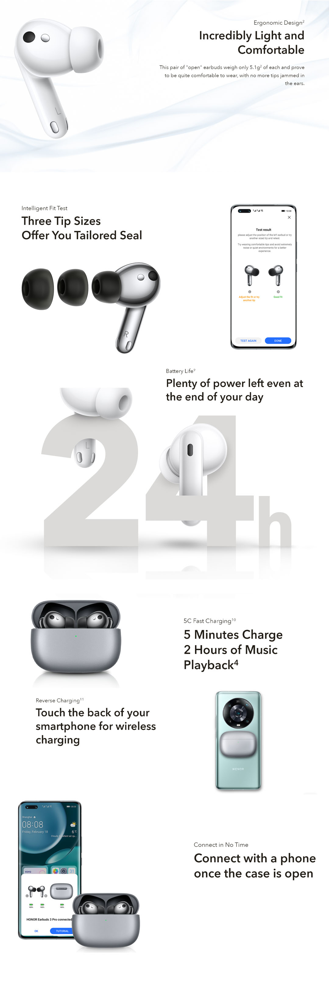 HONOR Earbuds 3 Pro | Coaxial Dual-driver Design | Adaptive Active Noise Cancellation | AI Temperature Monitoring | 5C Fast Charging | Reverse Charging | Earbuds with 1 Year Warranty