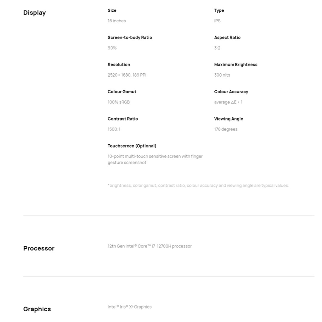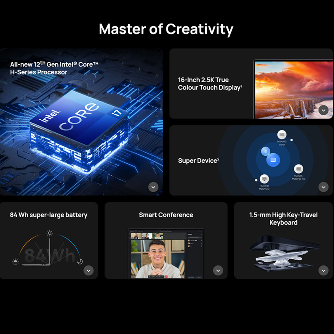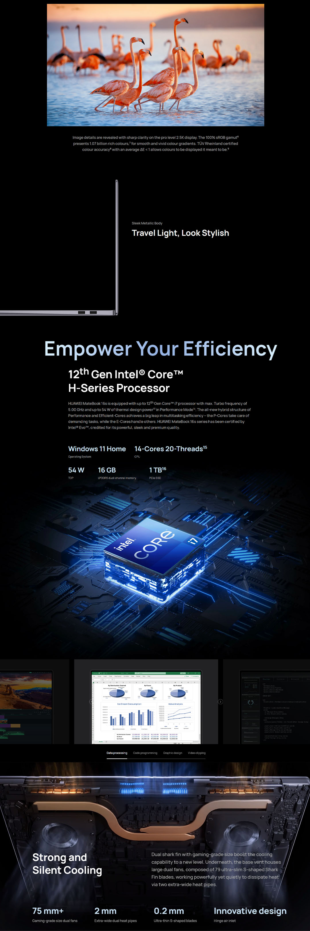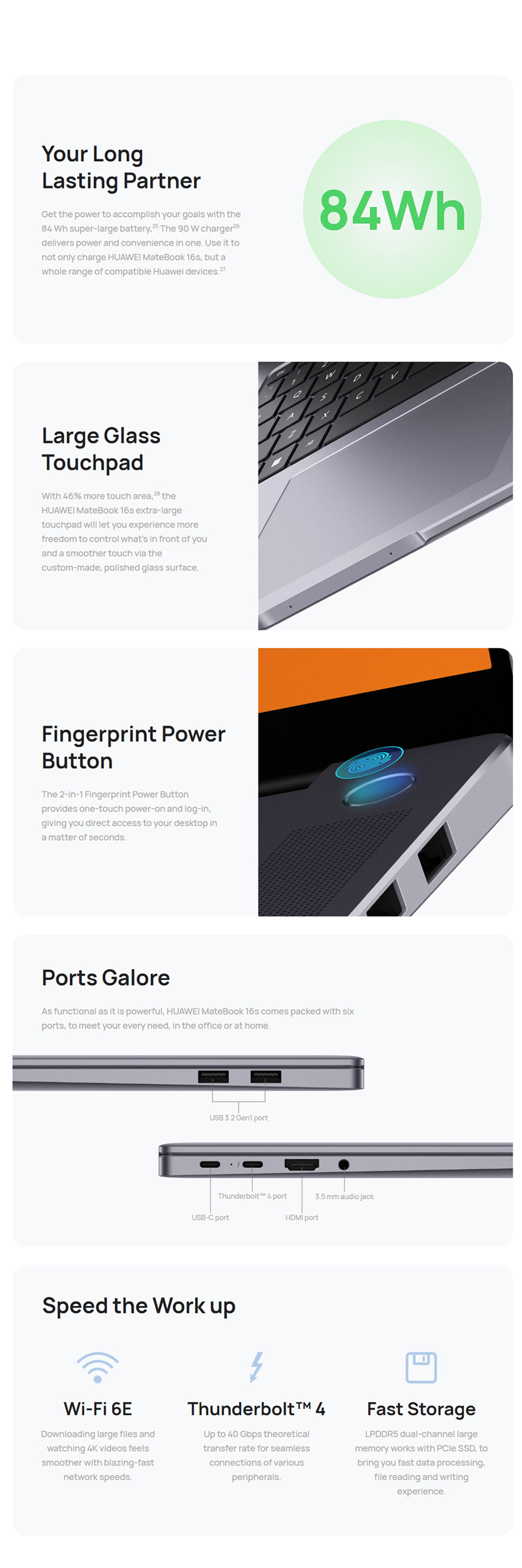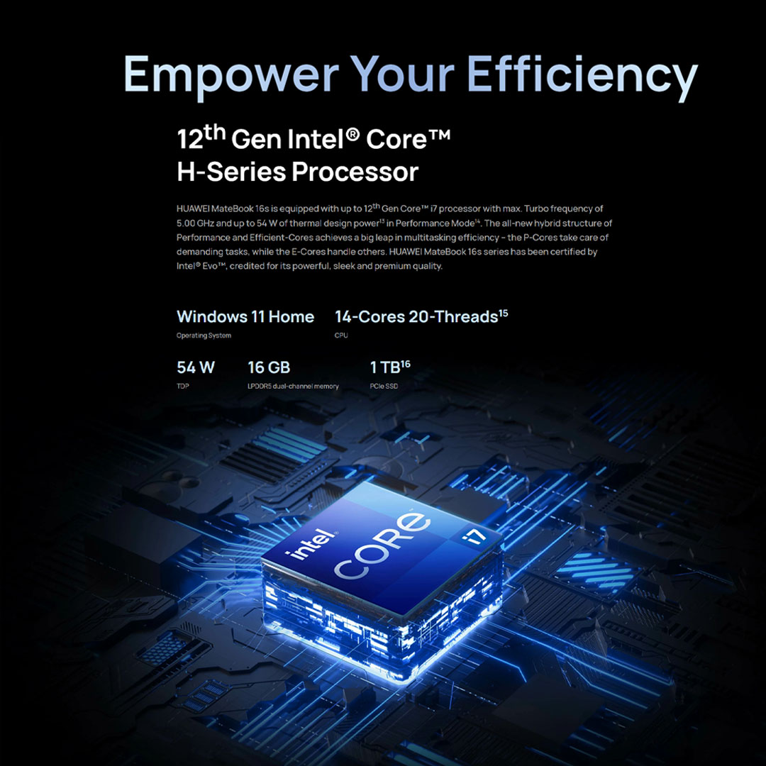 Huawei MateBook 16s 2022 Laptop 53013DRT (Intel Core i7-12700H/ 16GB+1TB SSD/ 16-inch FHD/ W11) | Wi-Fi 6E | Fingerprint Power Button | Window 11 Home | Laptop with 1 Year Warranty