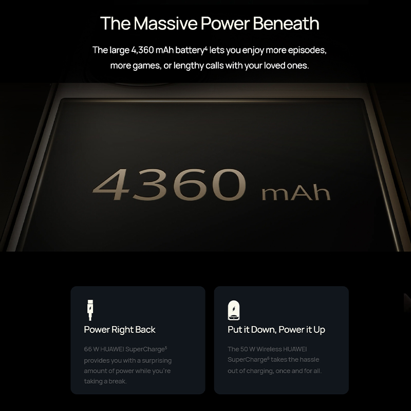 ● 50 W Wireless HUAWEI SuperCharge6,