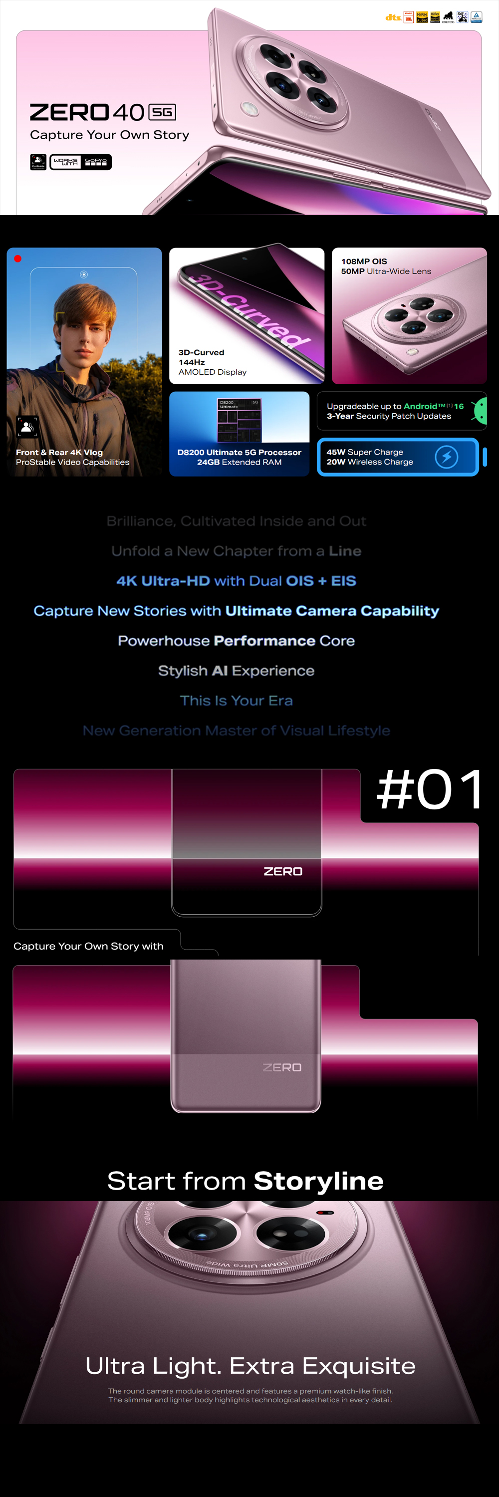 Infinix ZERO 40 5G 12GB+256GB | Android 14 XOS 14.5 | 6.78 inches, FHD+ With Curved Screen | Front & Rear 4K Vlog