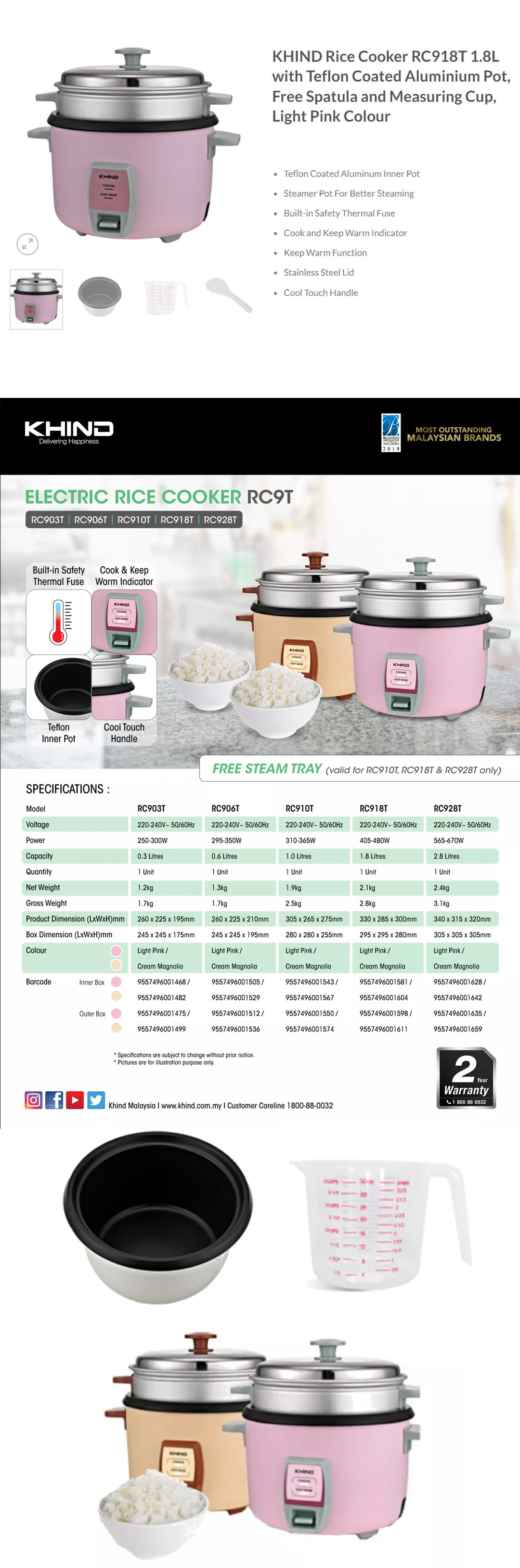 KHIND 2.8L Rice Cooker RC928T | FREE Steam Tray | Built-in Safety Thermal Fuse | Teflon Inner Pot | Cook & Keep Warm Indicator | Rice Cooker with 2 Years Warranty