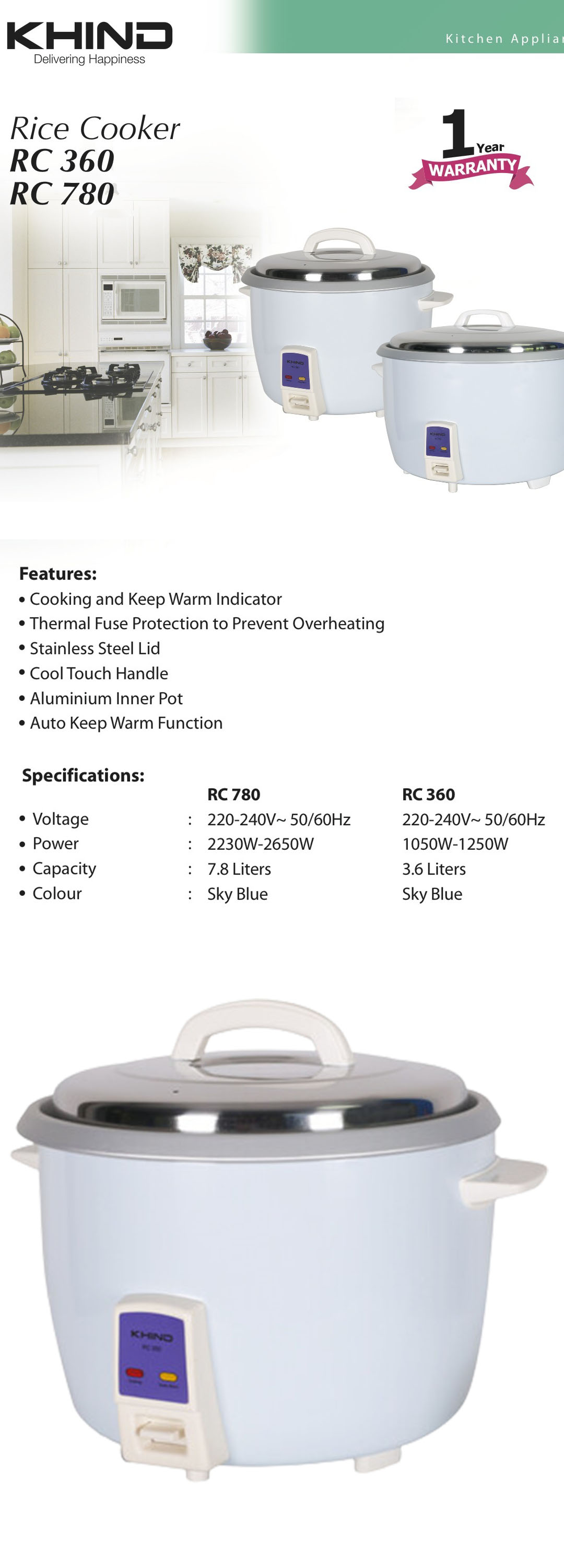 KHIND 3.6L Rice Cooker RC360 | Thermal Fuse Protection to Prevent Overheating | Auto Keep Warm Function | Aluminium Inner Pot | Cool Touch Handle | Rice Cooker with 1 Year Warranty
