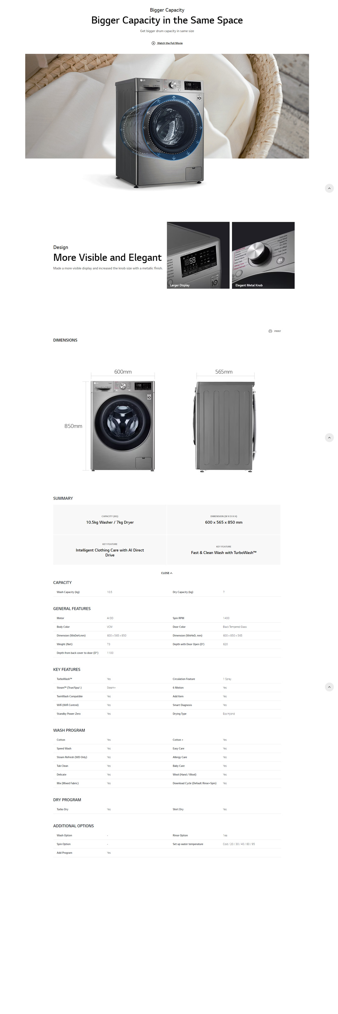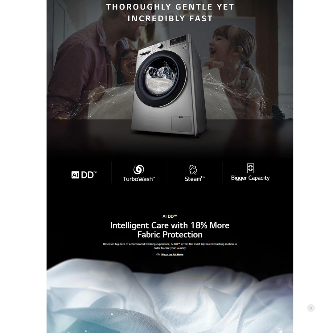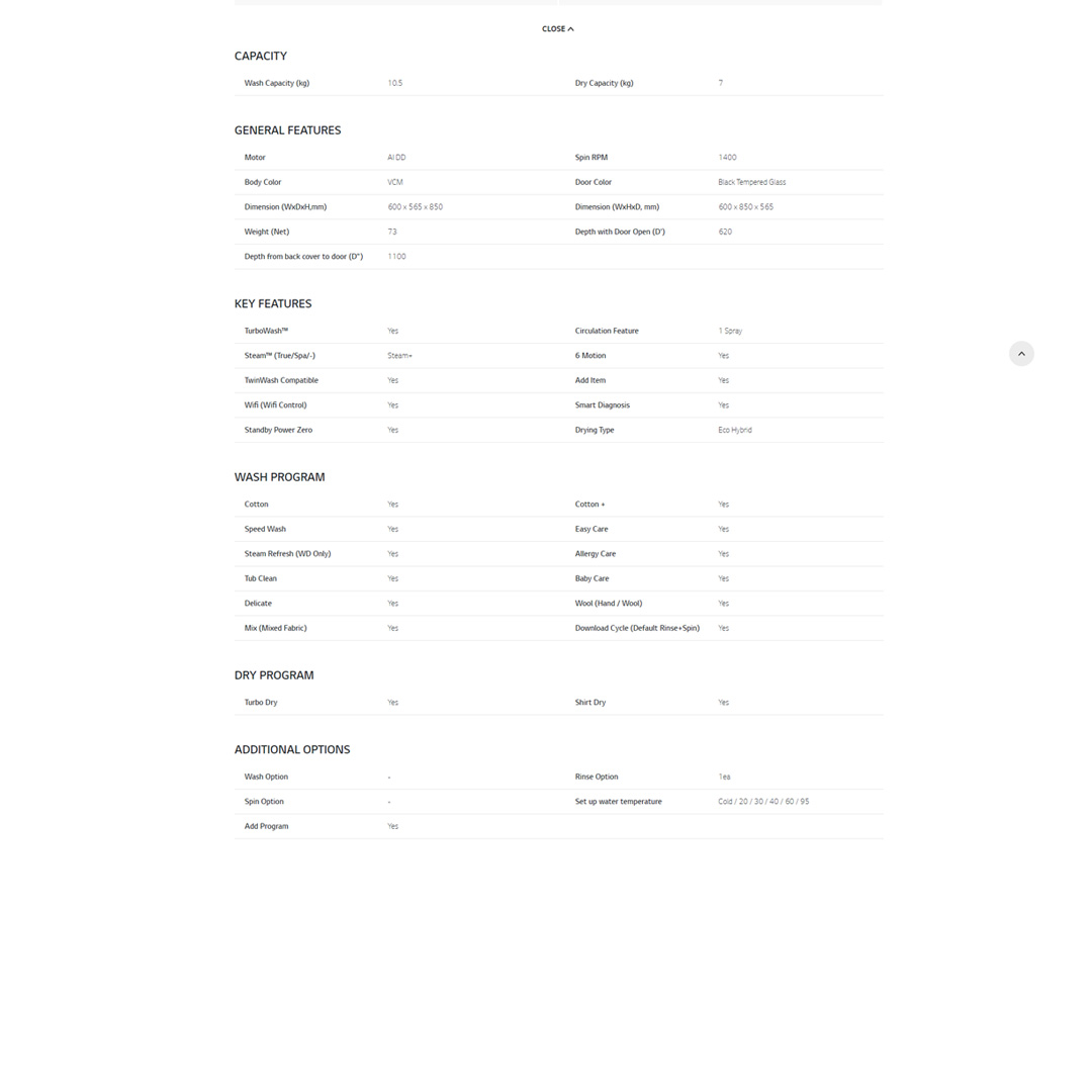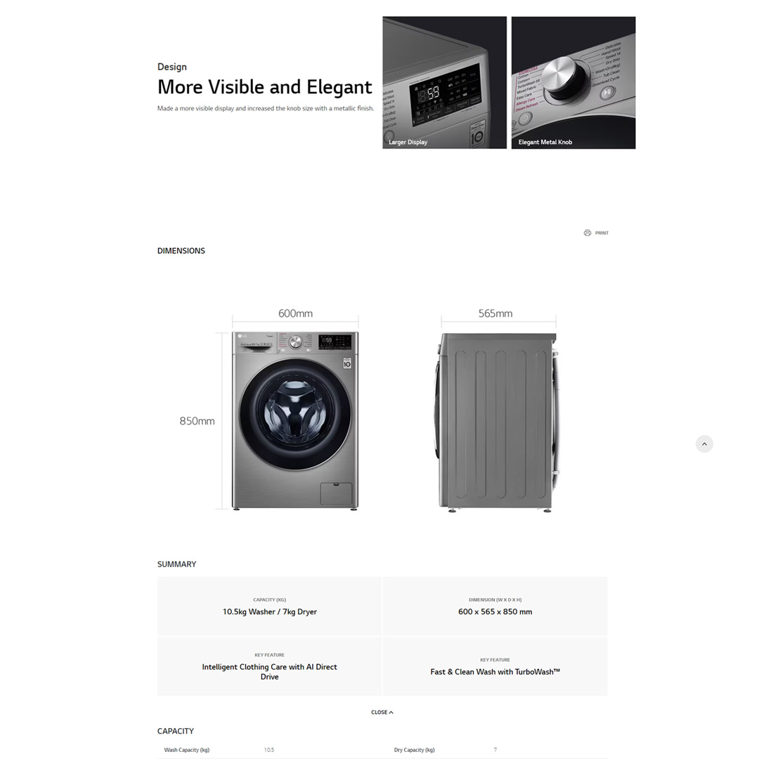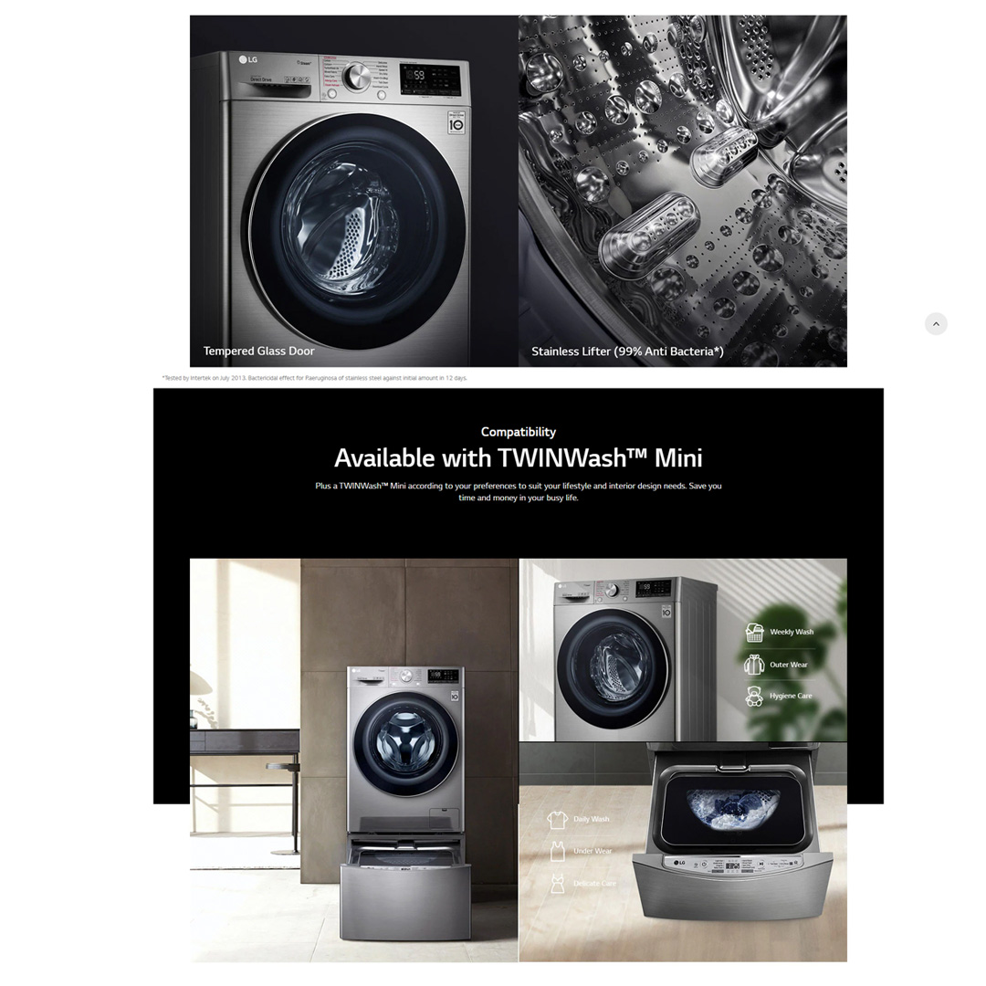 LG 10.5KG/7KG Front Load Washer Dryer with AI Direct Drive and Steam+ FV1450H3V | Wifi | Eco Hybrid | Steam+ | 6 Motion | Speed Wash | Baby Care | Tub Clean | Turbo Dry | Easy Care | Cotton+ | Washer Dryer with 1 Year Warranty
