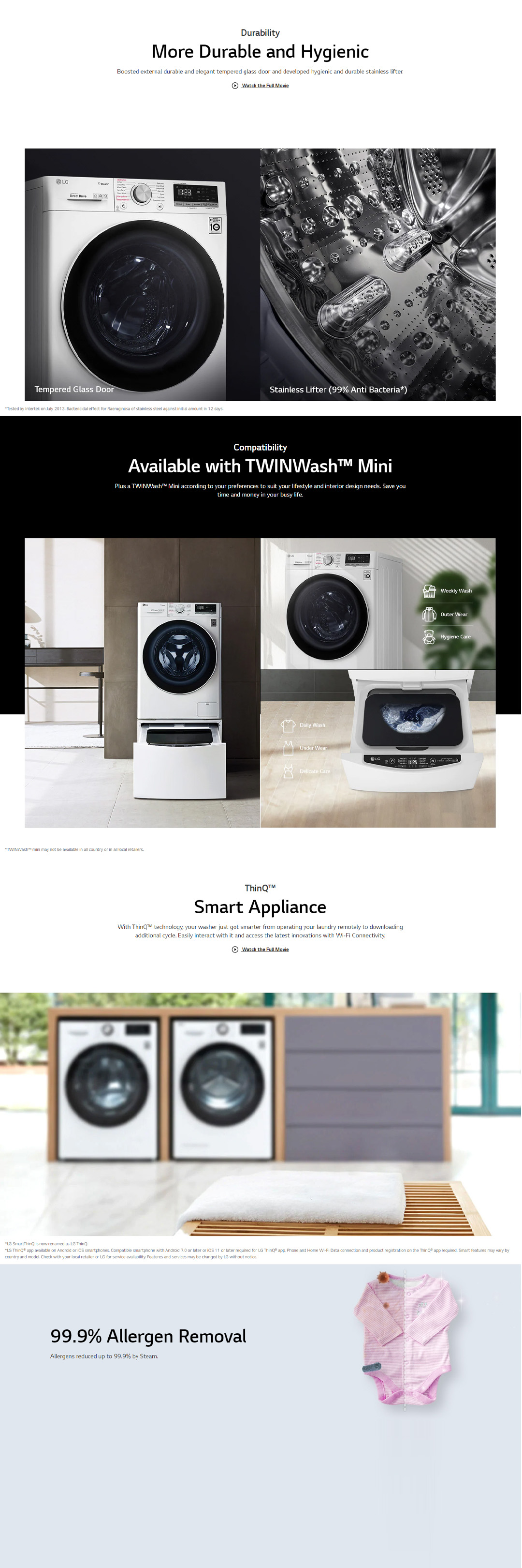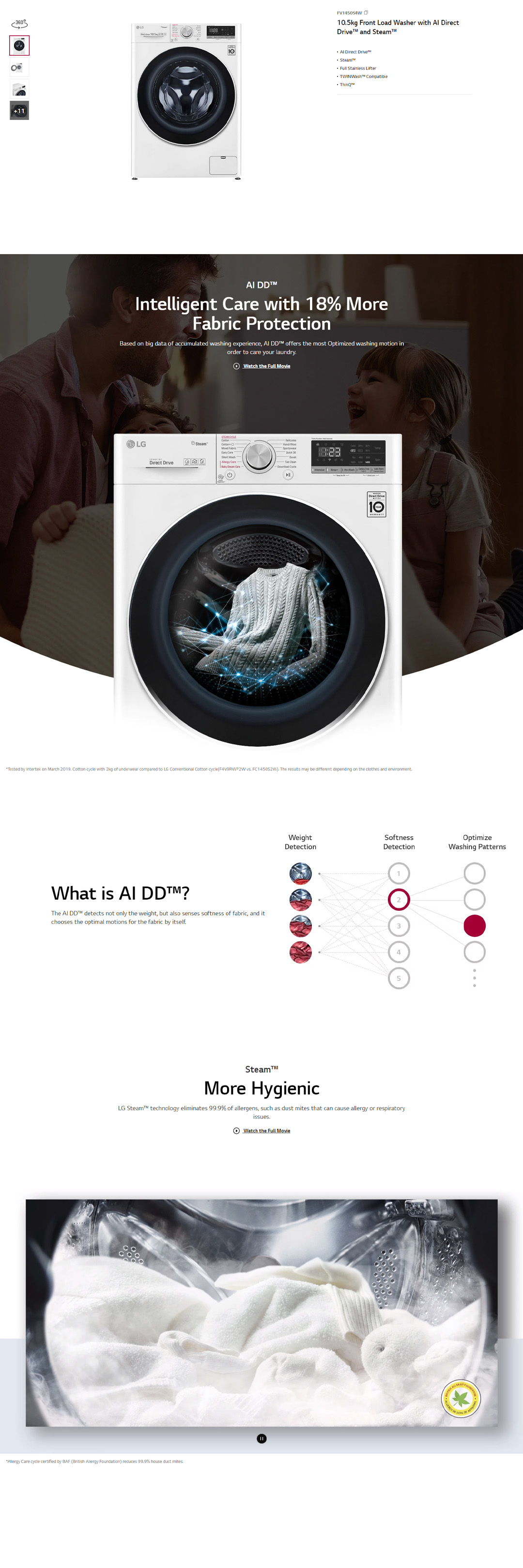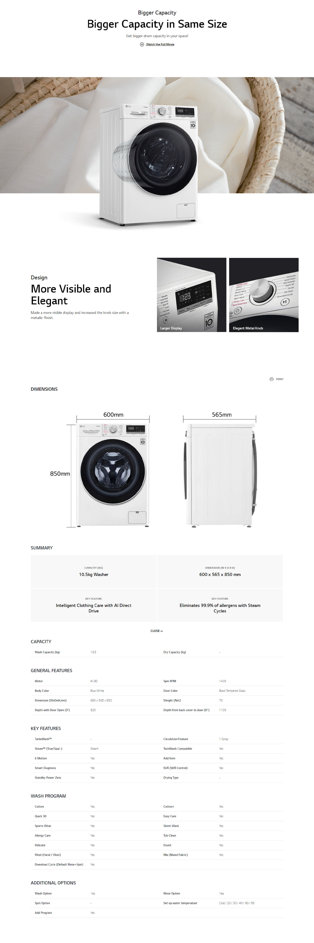 LG 10.5KG Front Load Washer with AI Direct Drive and Steam FV1450S4W | 6 Motion | Smart Diagnosis | Wifi | Tub Clean | Easy Care | Silent Wash | Smart Appliance | Loa Washer with 1 Year Warranty