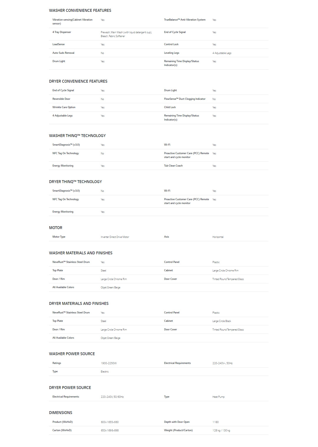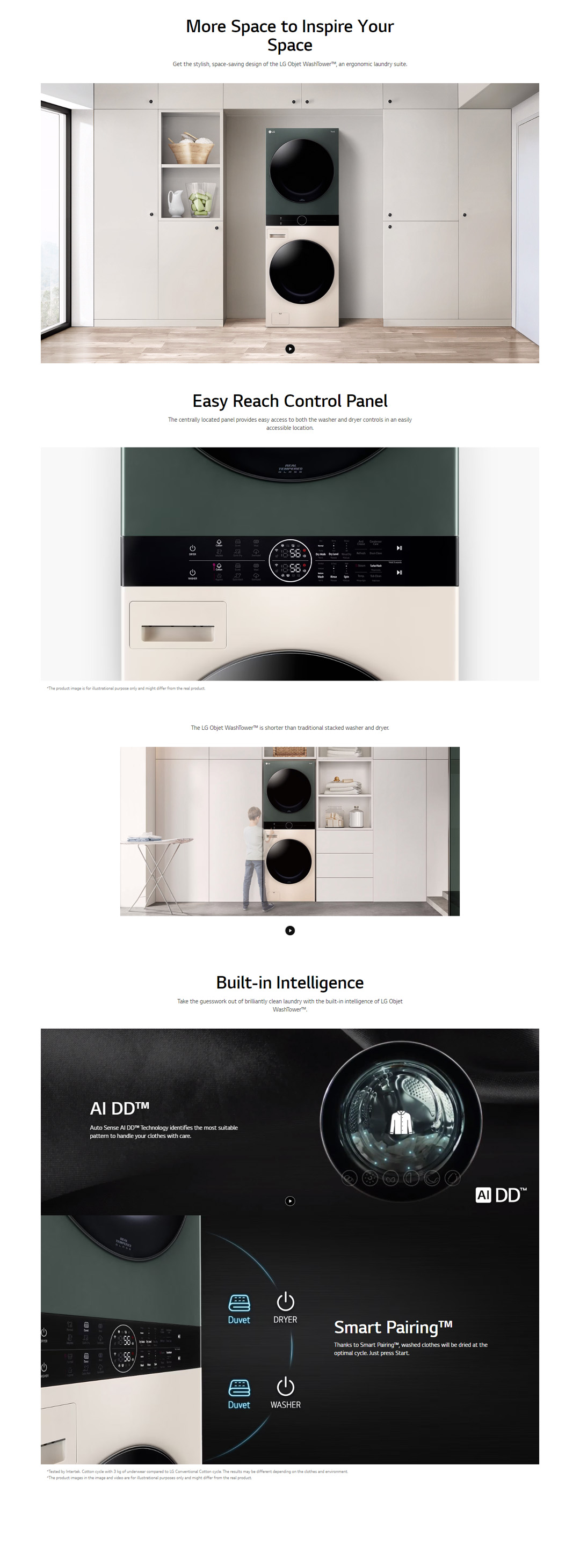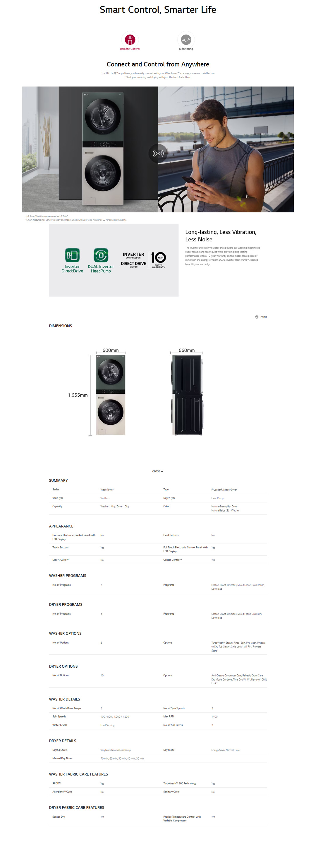 LG 14KG/10KG All-In-One Stacked Washer Dryer with AI Direct Drive Nature WT1410NHEG | TurboWashTM 360 | LG ThinQ app Compatible | Sensor Dry | Washer Dryer with 1 Year Warranty