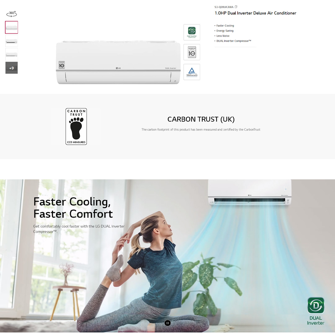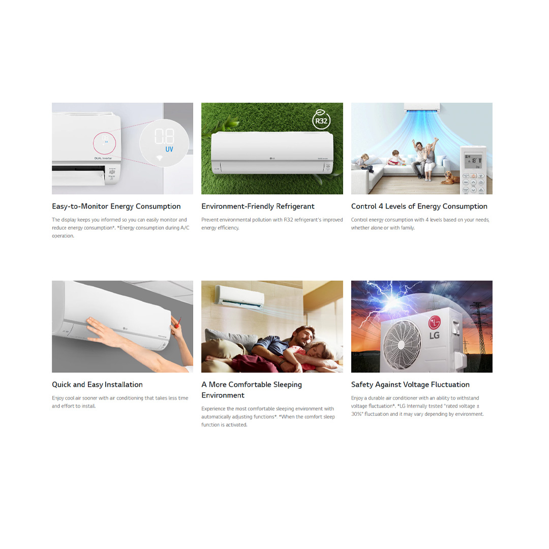 LG 1HP R32 Dual Inverter Deluxe Wall Mount Air Conditioner S3-Q09JA3WA | Timer | Sleep Mode | Auto Cleaning | Smart Diagnosis | Active Energy Control | Auto Restart | Fan Speed | Air Conditioner with 1 Year Warranty