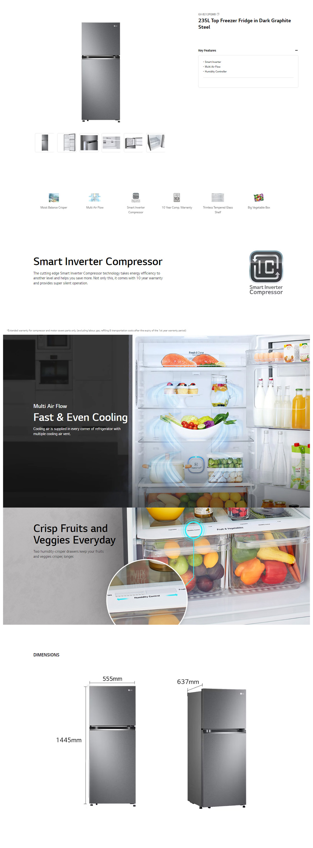 LG 235L 2 Doors Top Mount Smart Inverter Refrigerator GV-B212PQMB | Humidity Controller | Moist Balance Crisper | Multi Air Flow | Refrigerator with 1 Year Warranty