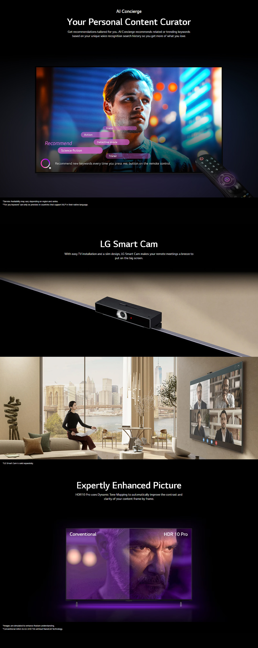● α5 AI Processor 4K Gen6 ● LG Smart Cam ● Ultra Big Screen