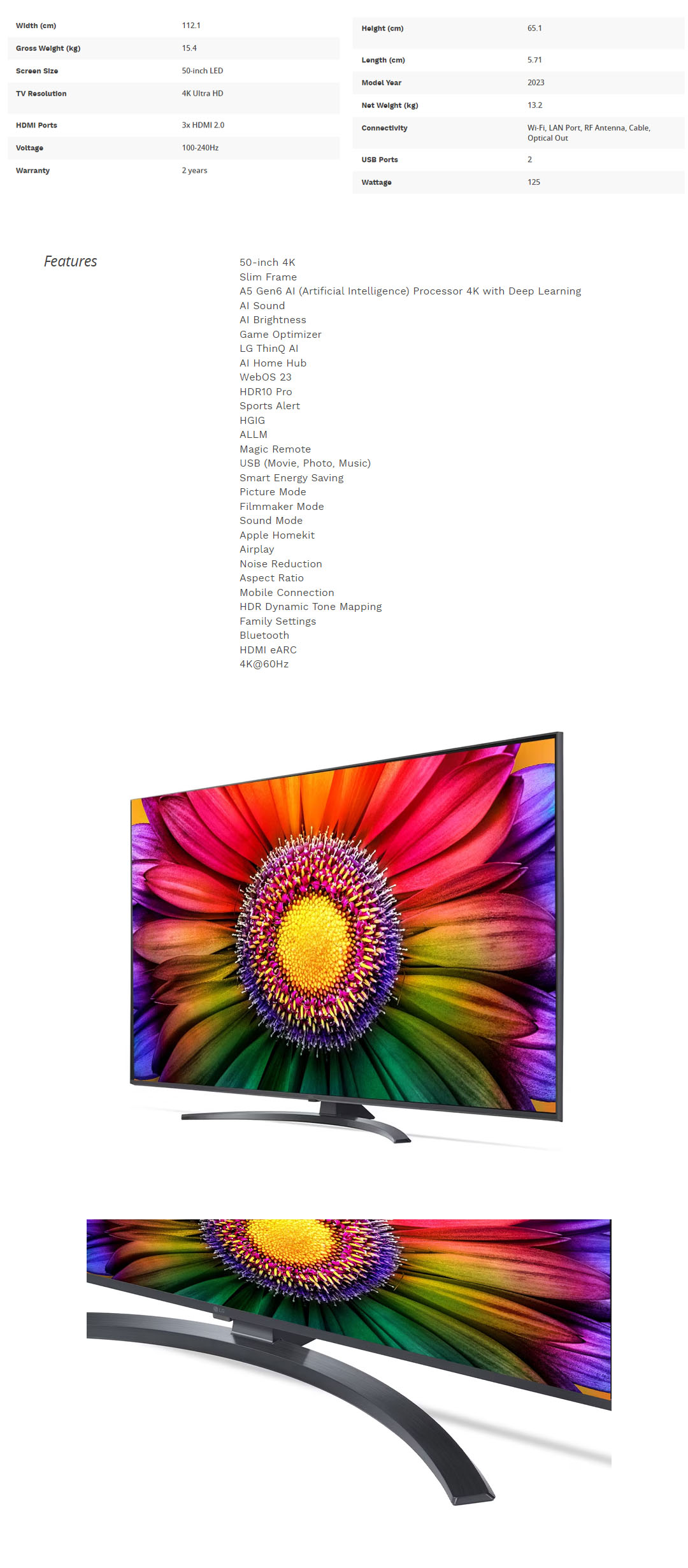 LG 50" 4K UHD Smart TV with AI ThinQ 50UR8150PSB | AI Sound | Wi-Fi | Filmmaker Mode | Netflix | Smart TV with 2 Year Warranty