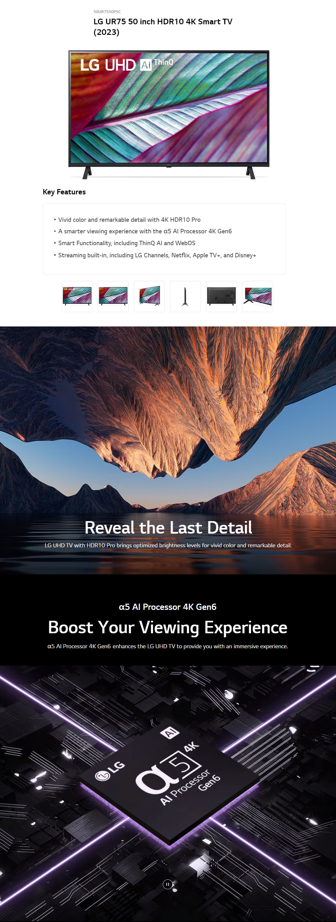 LG 55" 4K Smart TV with AI ThinQ 55UR7550PSC | AI Sound | Wi-Fi | Filmmaker Mode | Netflix | Smart TV with 2 Year Warranty