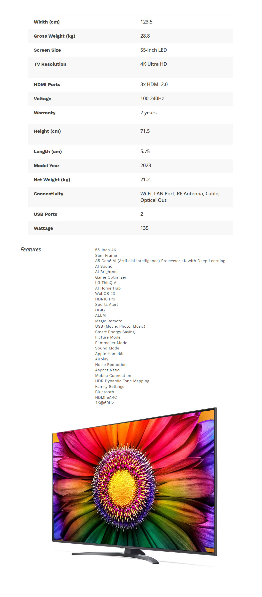 LG 55" 4K UHD Smart TV with AI ThinQ 55UR8150PSB | AI Sound | Wi-Fi | Filmmaker Mode | Netflix | Smart TV with 2 Year Warranty
