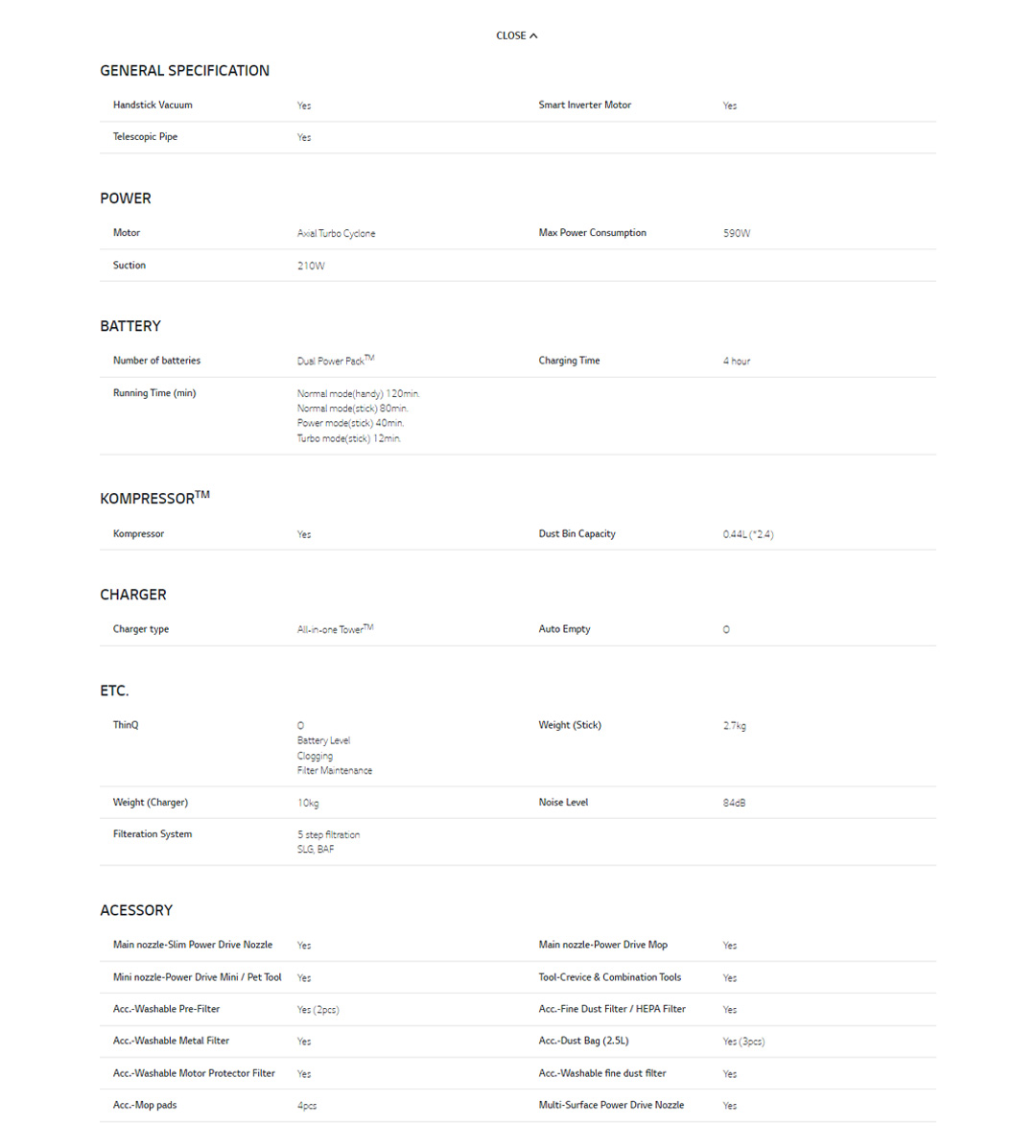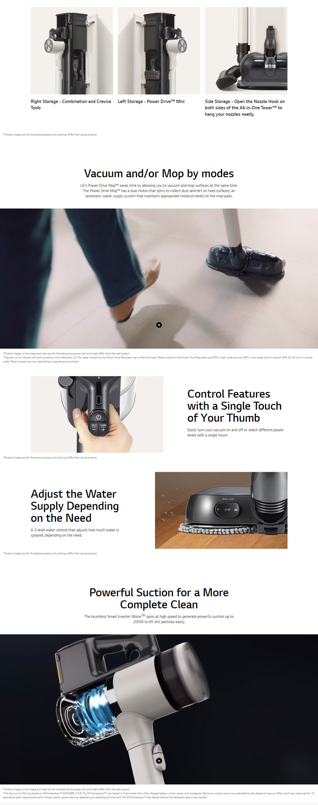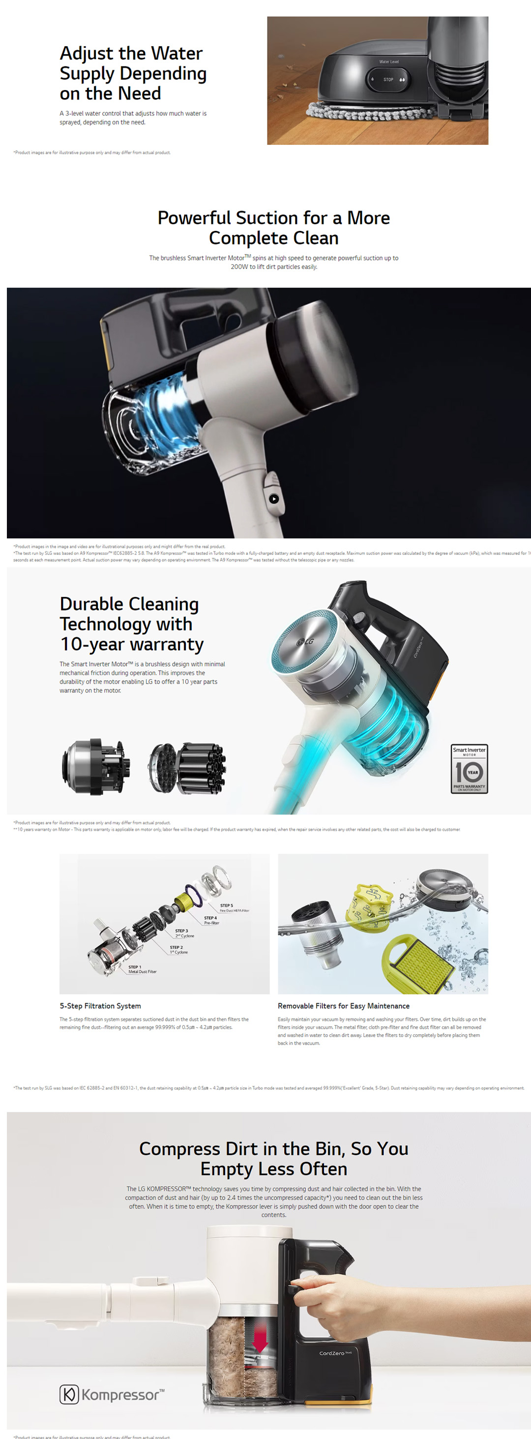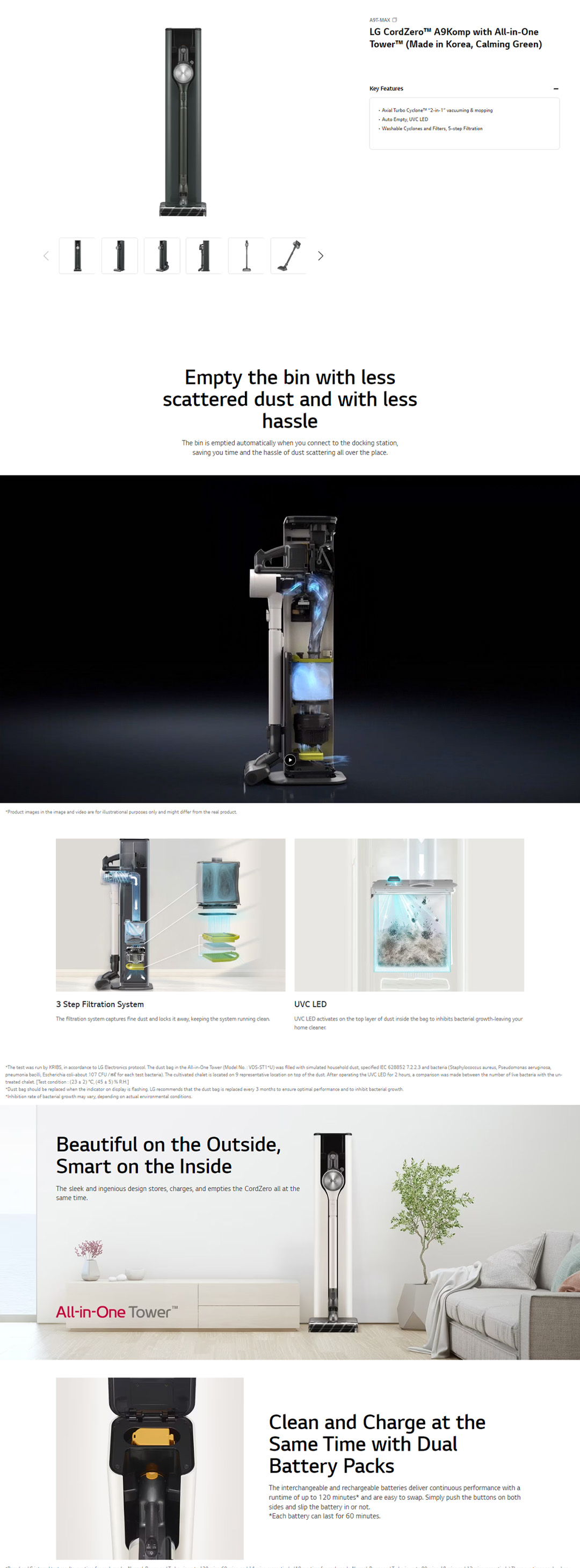 LG 590W CordZero A9Komp with All-in-One Tower Vacuum-Mop A9T-Max | Smart Inverter Motor | 5 step Filtration | Dual Battery Packs | Stick Vacuum with 2 Year Warranty