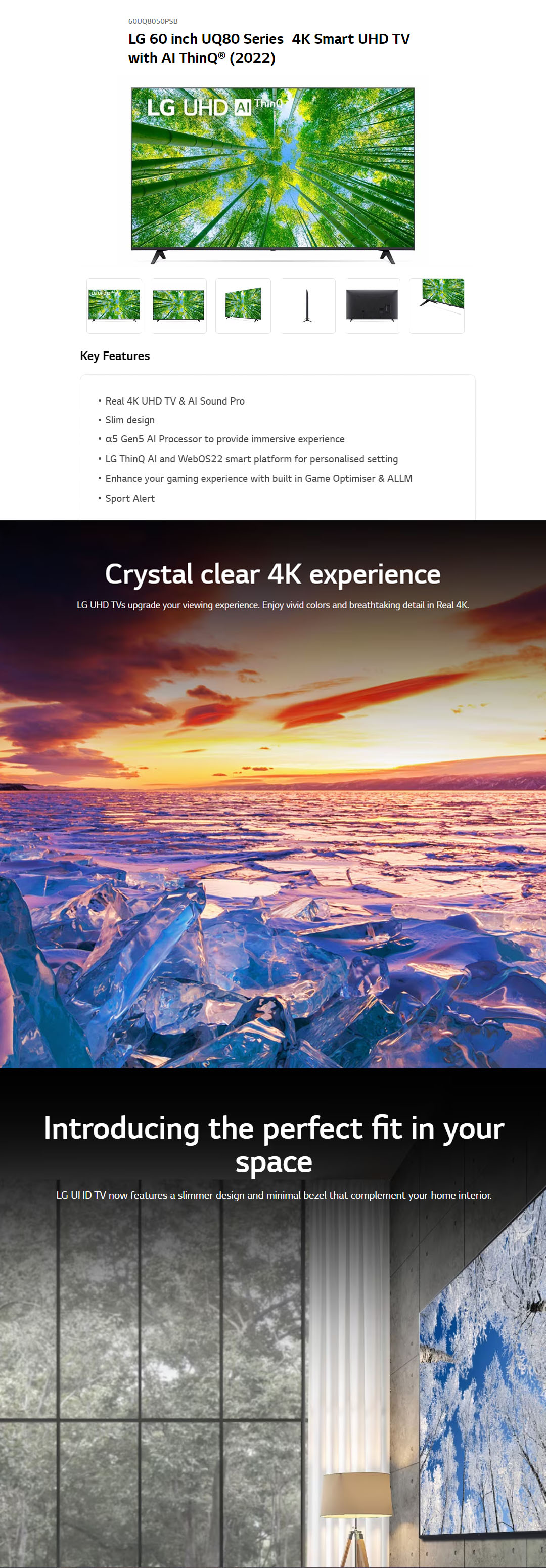 LG 60" 4K UHD Smart TV with AI ThinQ 60UQ8050PSB | AI Sound | Wi-Fi | Filmmaker Mode | Netflix | HDR | Smart TV with 2 Year Warranty