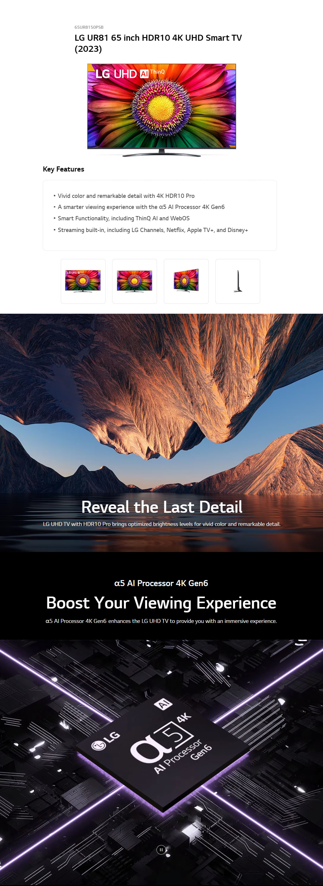 LG 65" 4K UHD Smart TV with AI ThinQ 65UR8150PSB | AI Sound | Wi-Fi | Filmmaker Mode | Netflix | Smart TV with 2 Year Warranty