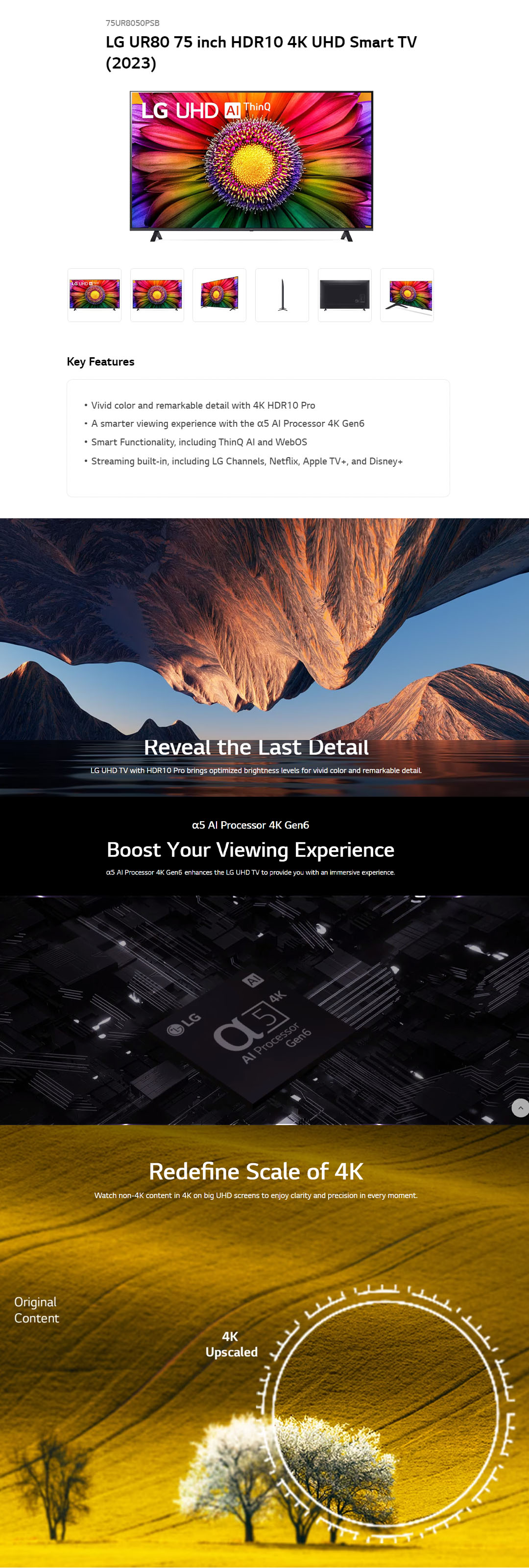 LG 75" 4K UHD Smart TV with AI ThinQ 75UR8050PSB | AI Sound | Wi-Fi | Filmmaker Mode | Netflix | HDMI | WebOS 23 |Smart TV with 2 Year Warranty