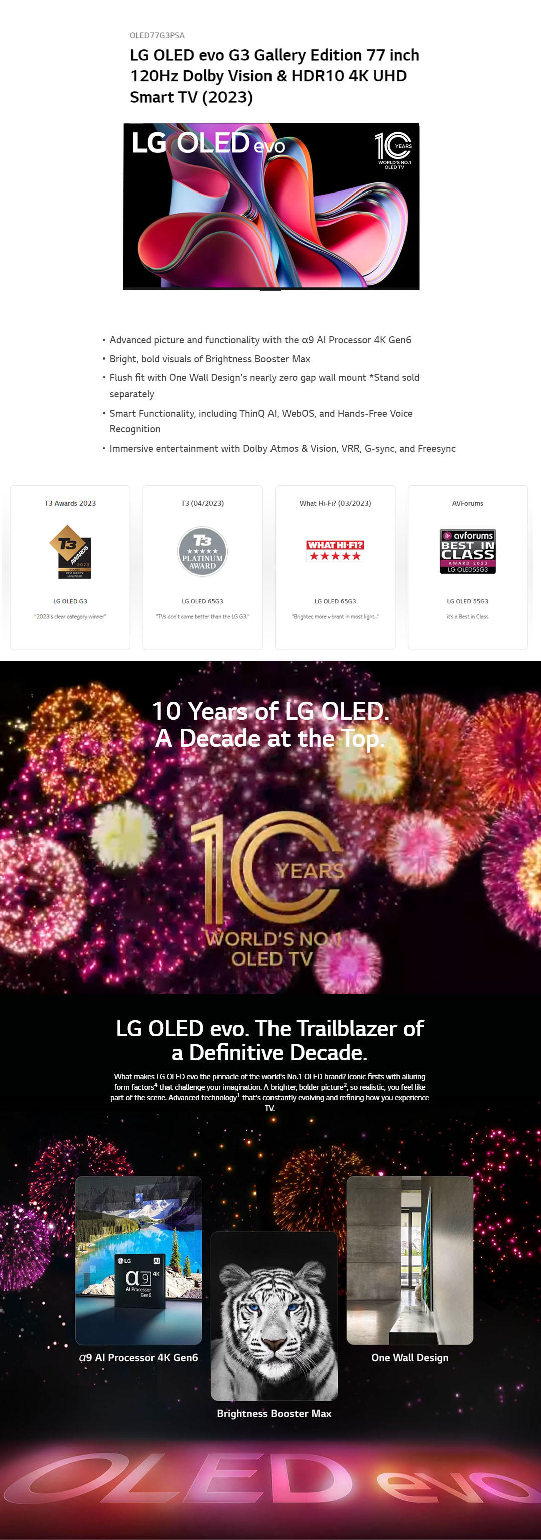 LG 77" 4K UHD Smart TV with AI ThinQ OLED77G3PSA | OLED Motion | webOS 23 | Bluetooth 5.0 | AI Picture Pro | Dolby Vision | Sound Mode Share | Smart TV with 2 Year Warranty