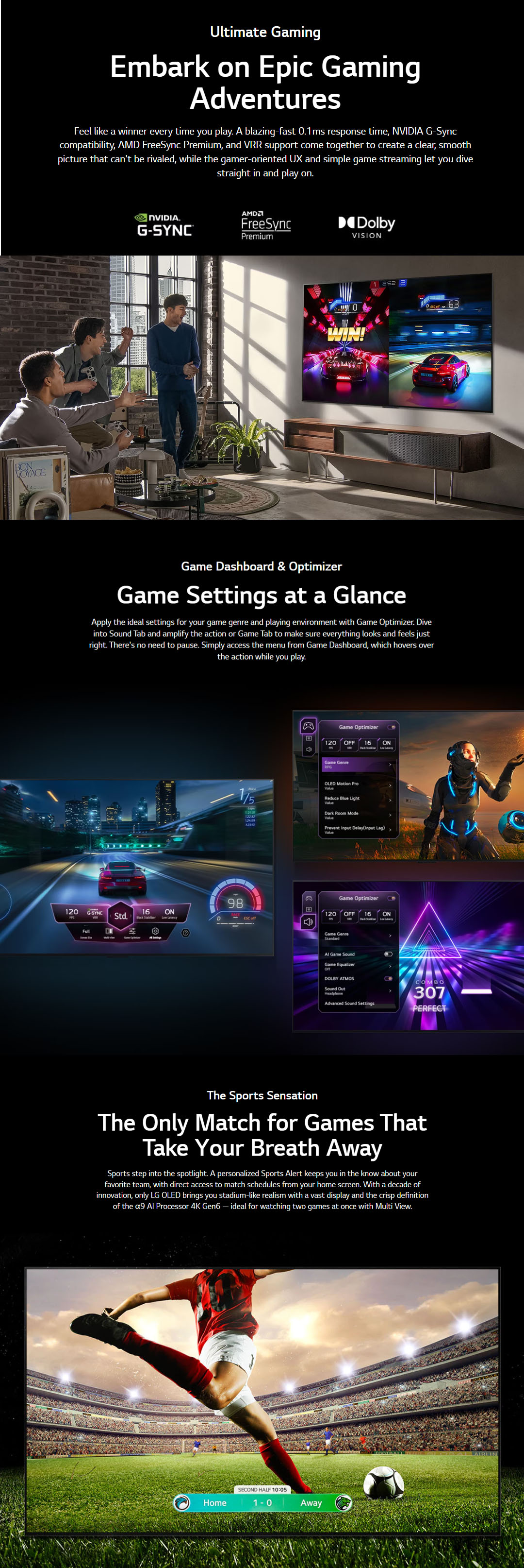 • Immersive entertainment with Dolby Atmos & Vision, VRR, G-sync, and Freesync