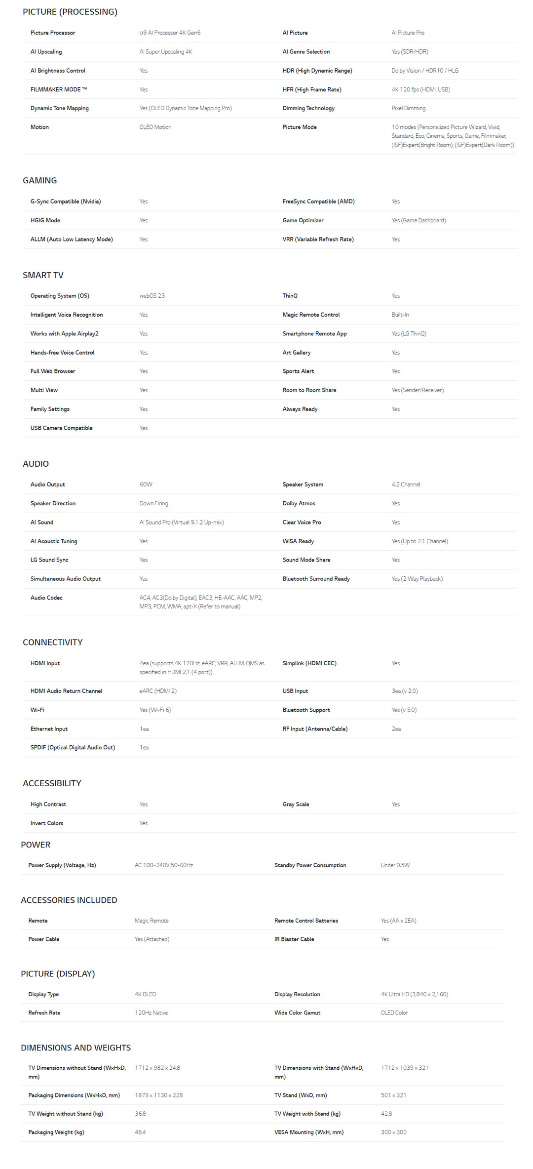 • Smart Functionality, including ThinQ AI, WebOS, and Hands-Free Voice Recognition