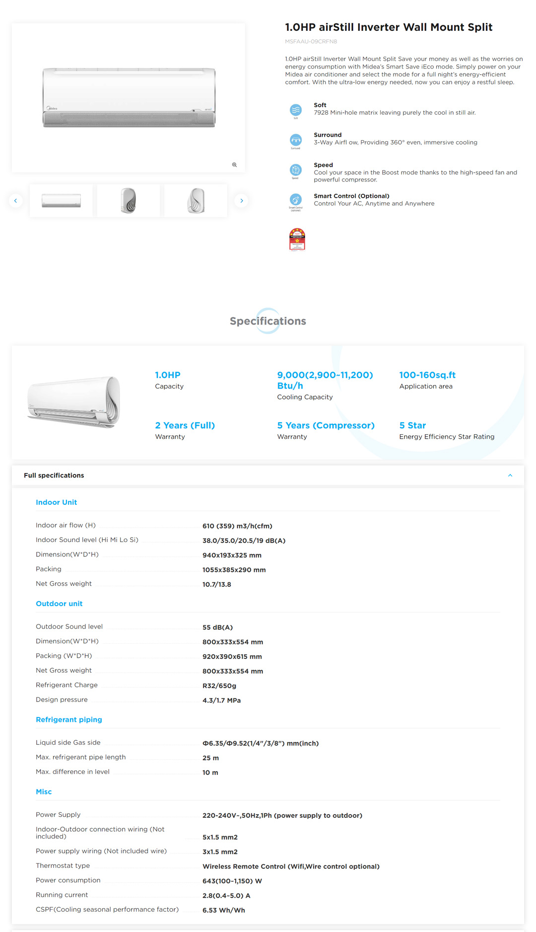 Midea 1HP R32 Xtreme Dura Non-Inverter Wall Mount Air Conditioner MSGD-09CRN8 | Prime Guard | Air magic | Cold Catalyst Filter | Air Conditioner with 2 Years Warranty