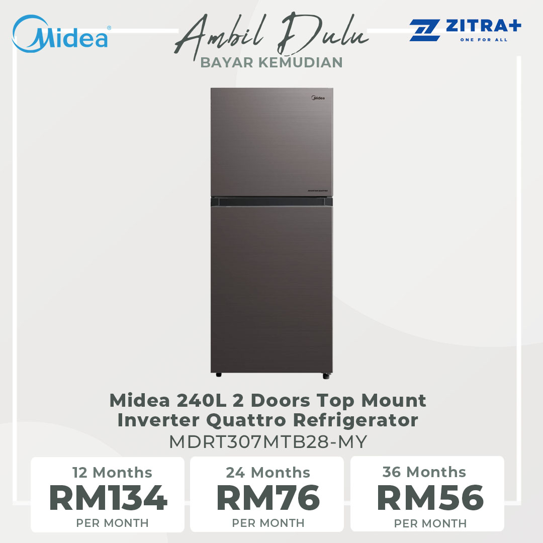 Midea 240L 2 Doors Top Mount Inverter Quattro Refrigerator MDRT307MTB28-MY | Inverter Quattro | Smart Cooling | Smart Sensor | Refrigerator with 1 Year Warranty