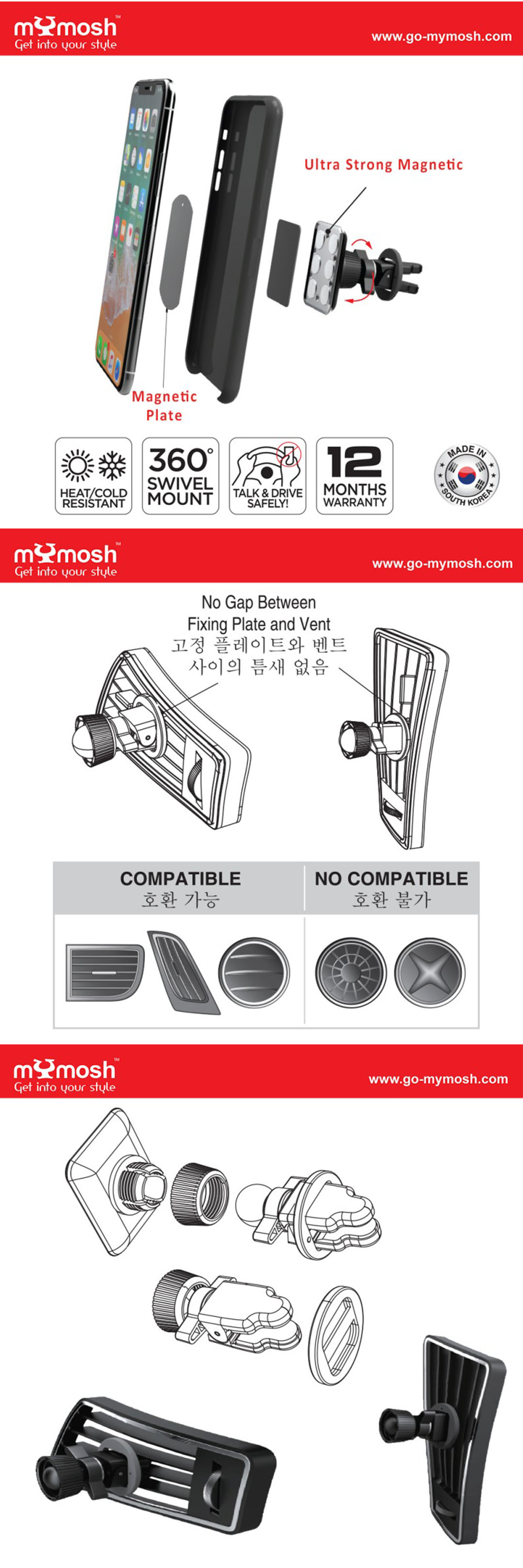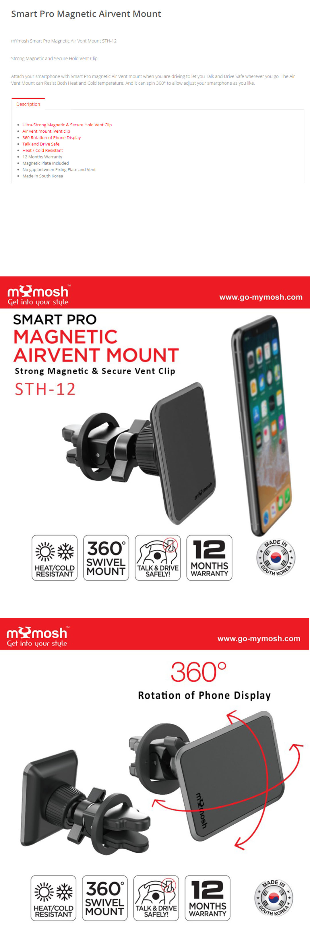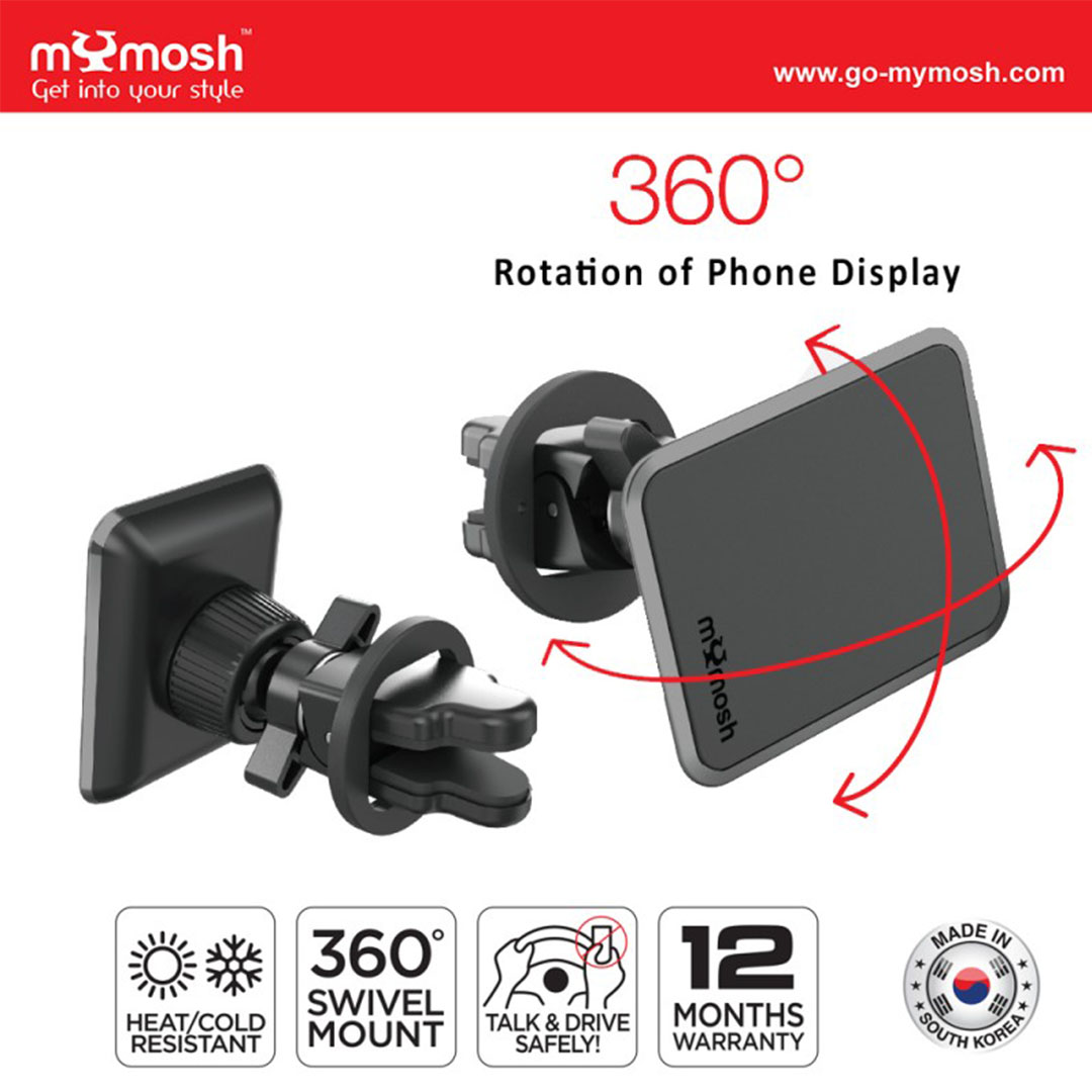 mYmosh Smart Pro Magnetic Airvent Mount | Ultra-Strong Magnetic | Secure Hold Vent Clip | 360 Rotation | Talk And Drive Safe | Heat/Cold Resistant | Airvent Mount with 1 Year Warranty