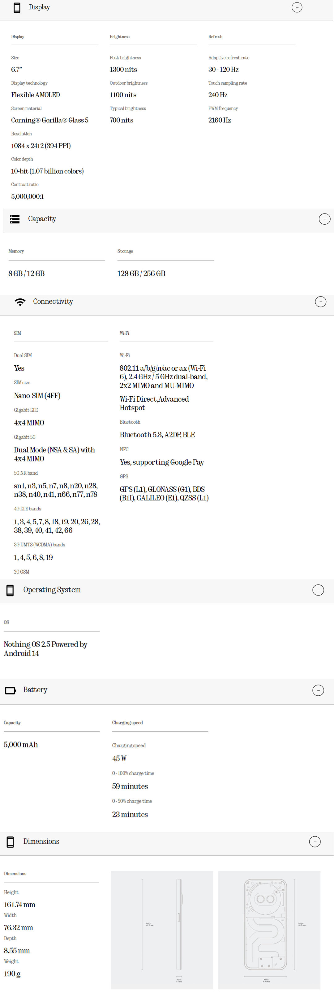 • Operating System : Nothing OS 2.5 Powered by Android 14