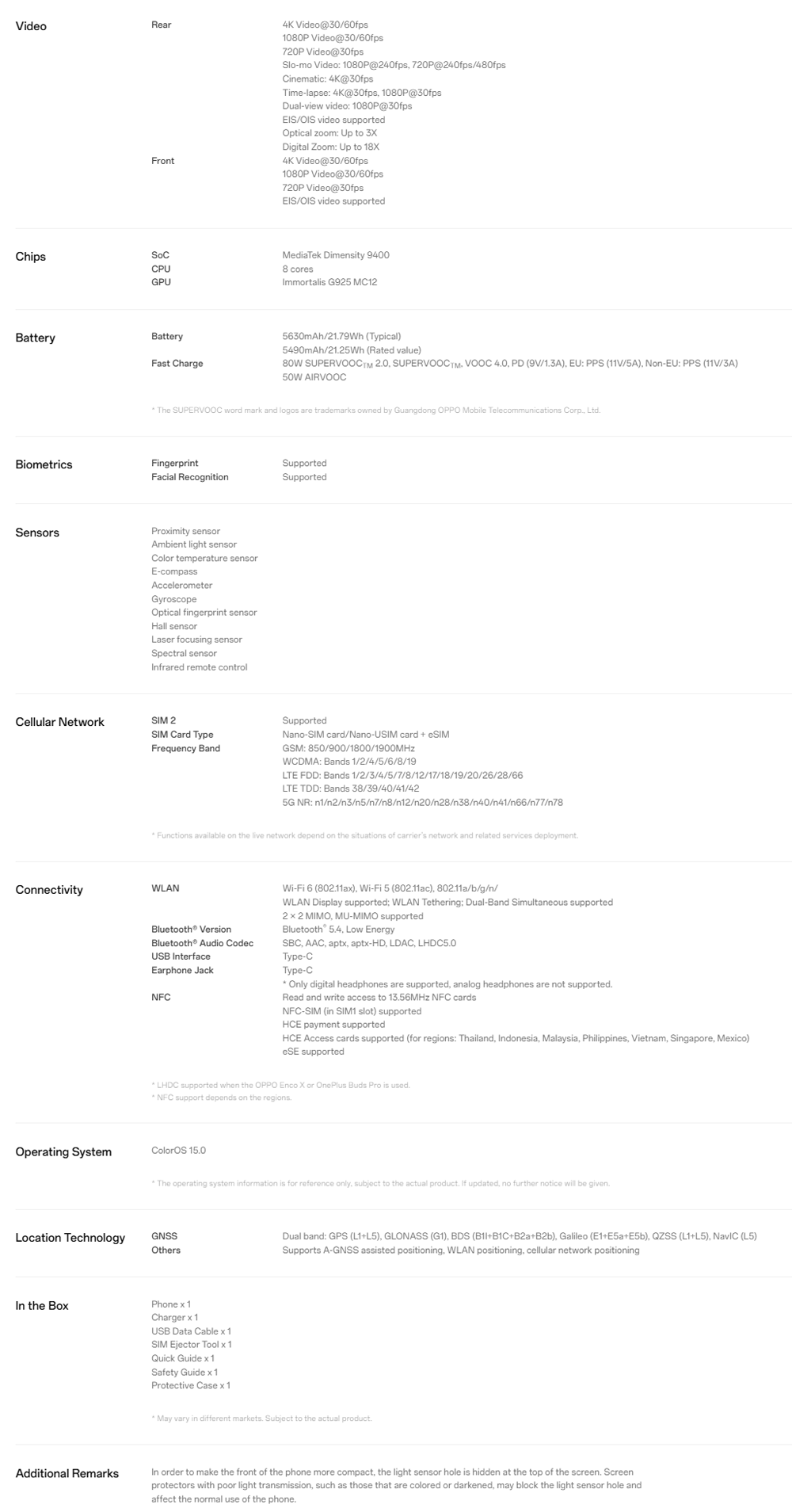 • Battery Capacity(mAh): 5630mAh, Fast charging 80W
