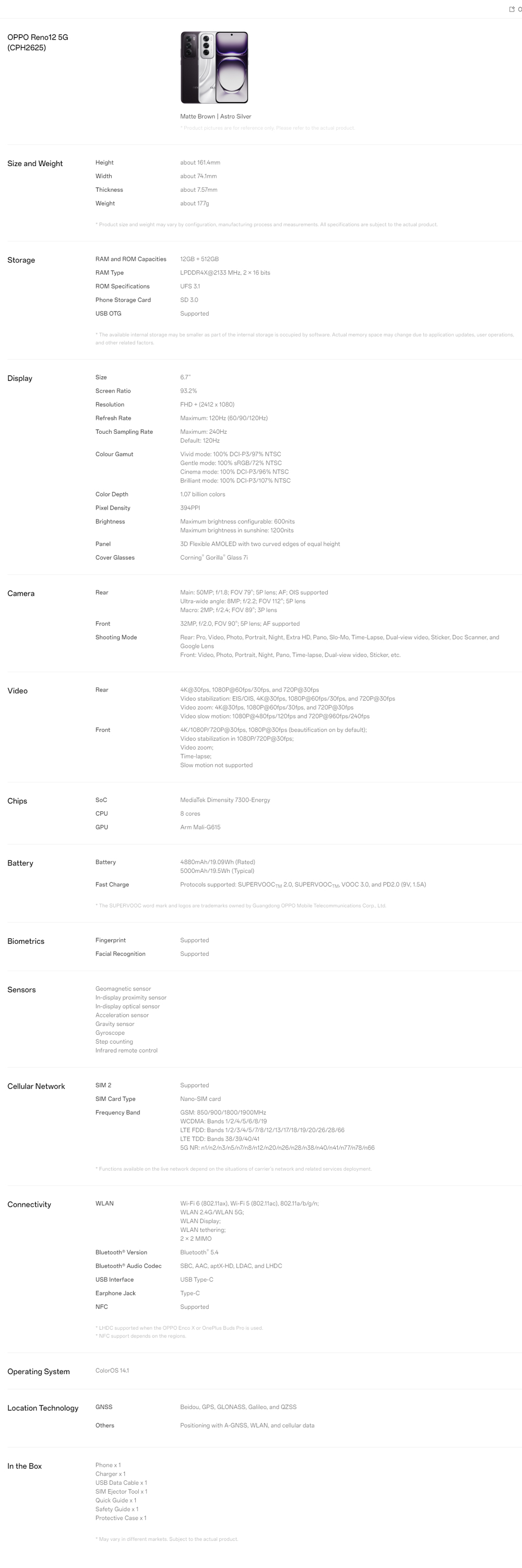 OPPO Reno12 5G 12GB+512GB | Unprecedented Reno Design | Reno's Best Battery Life Ever | AI Expert Potrait | 1 Year General Warranty