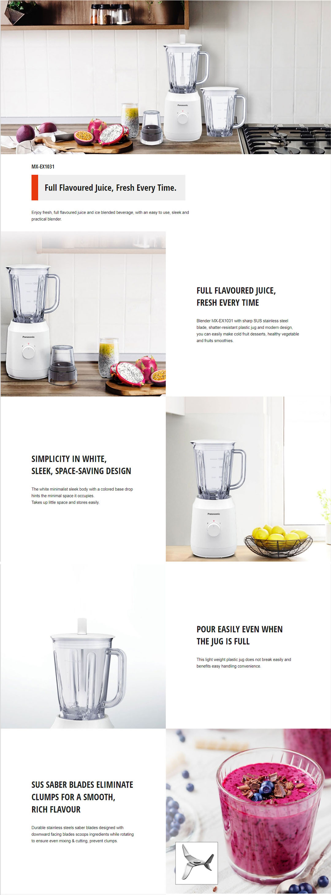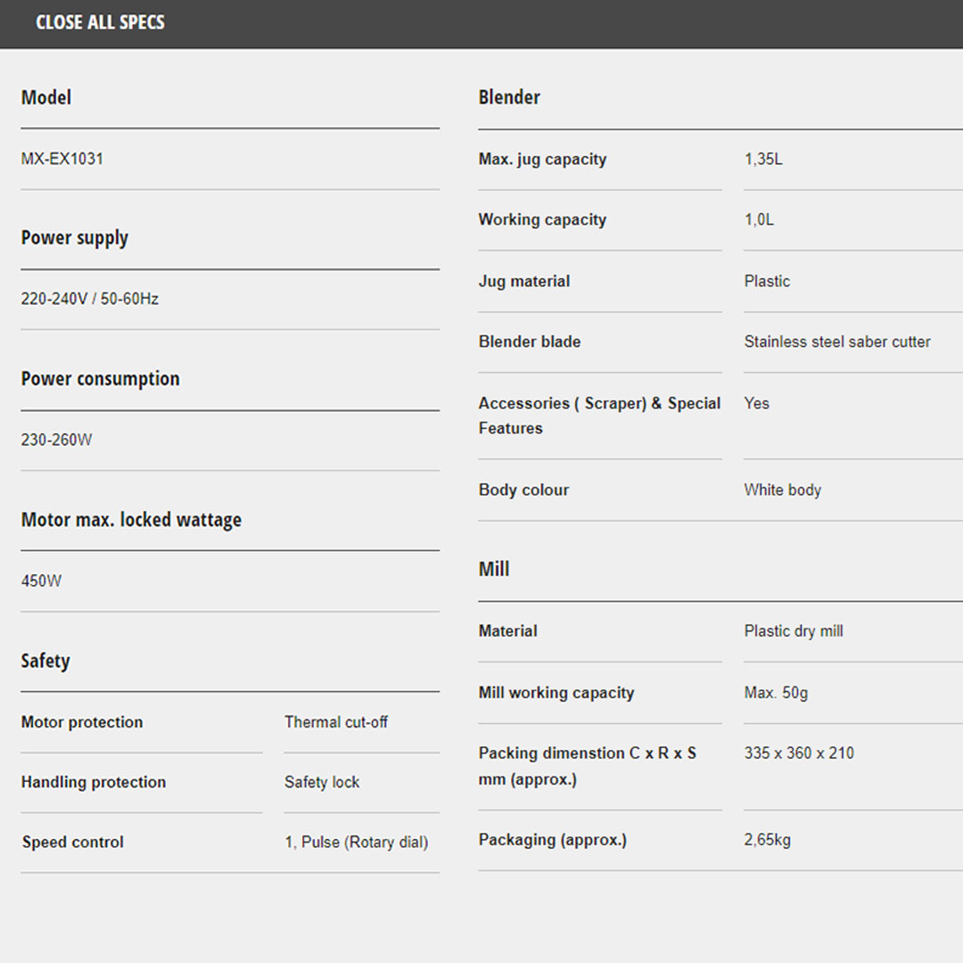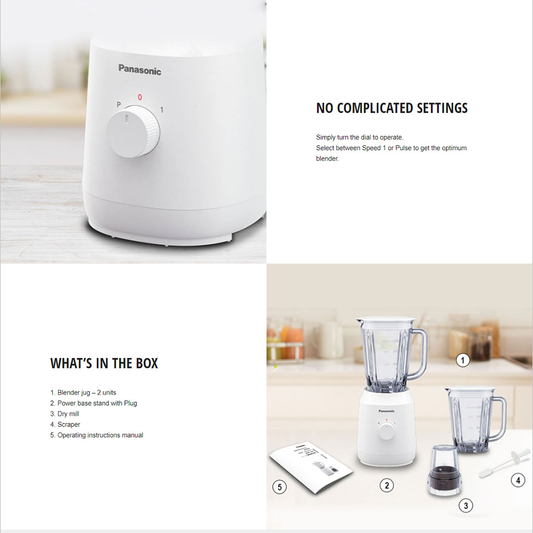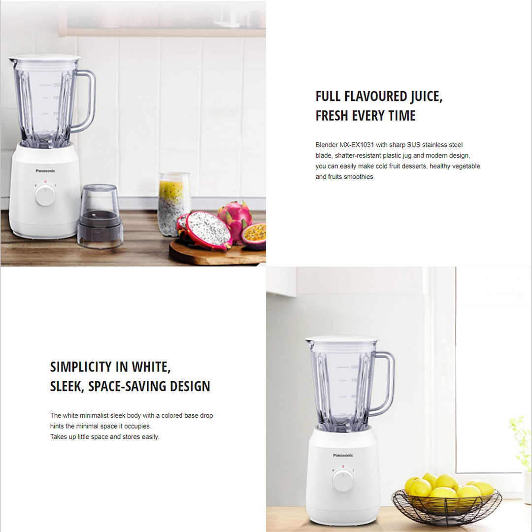 Panasonic 1.35L Plastic Twin Jug Blender MX-EX1031 | Safety Lock | Thermal Cut-Off | Dry Mill | Speed Control | Blender with 1 Year Warranty