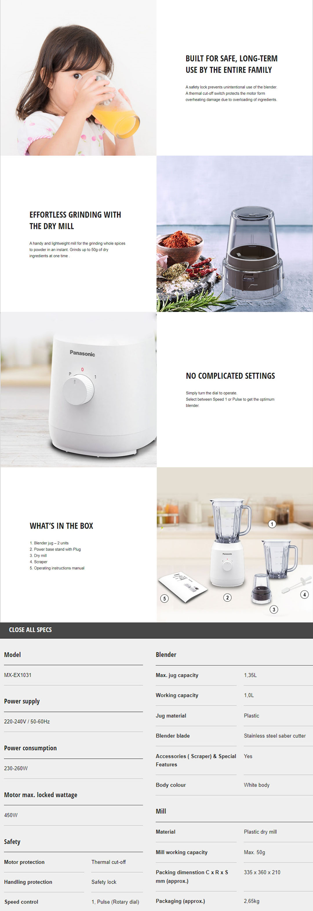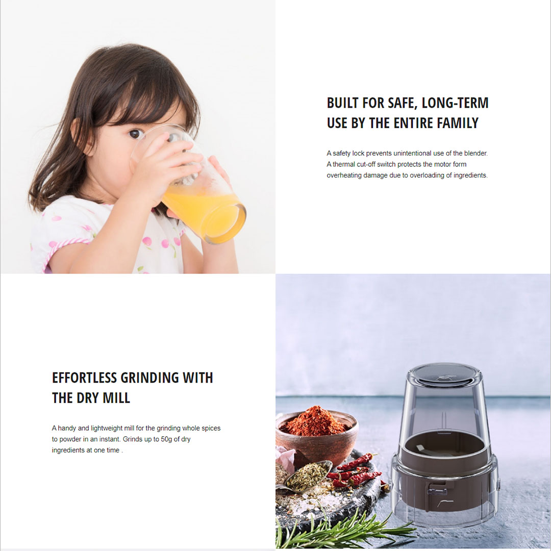 ● Safety Lock ● Thermal Cut-Off ● Dry Mill