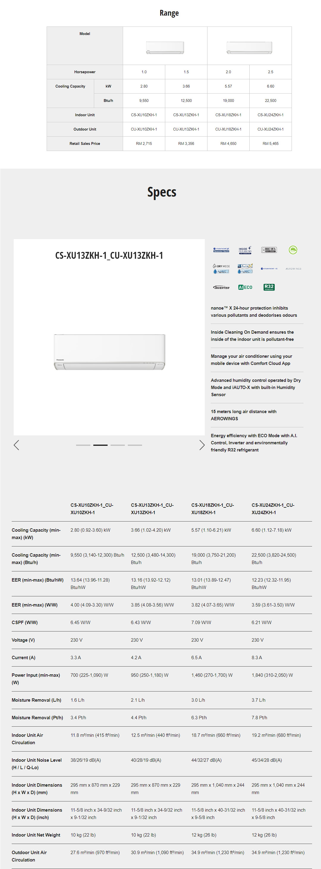 Panasonic 1.5HP R32 Premium Inverter Wall Mount Air Conditioner CS-XU13ZKH/CU-XU13ZKH | Connectivity and Control,Simplified | Clean&Fresh Environment Every Day | Connect&Control Your Air Conditioners Anywhere,Anytime | Air Conditioner with 2 Year Warranty