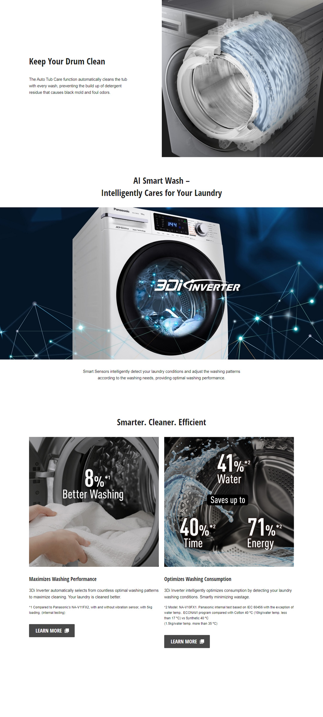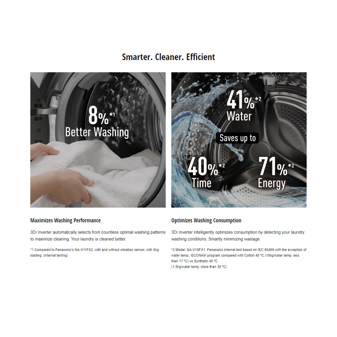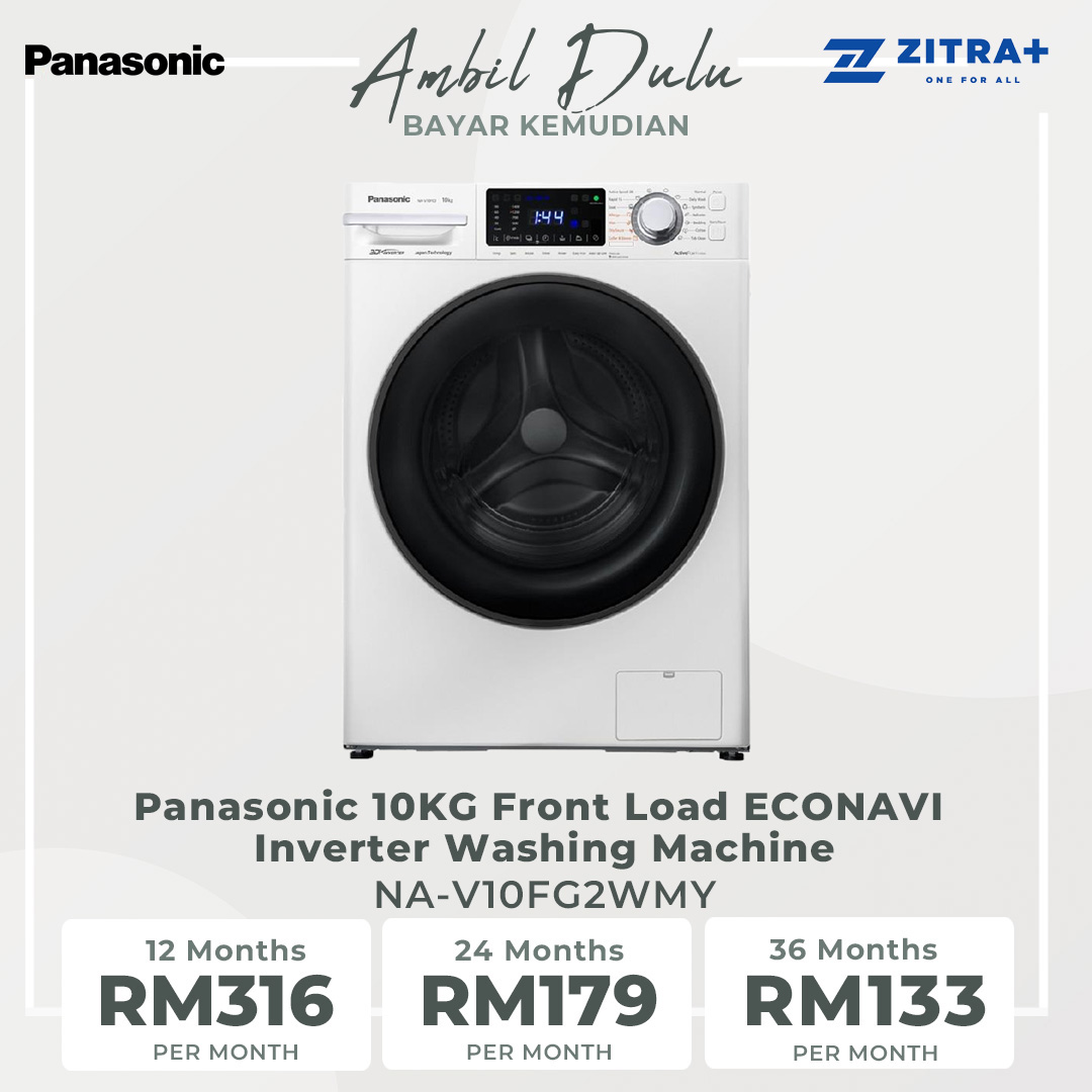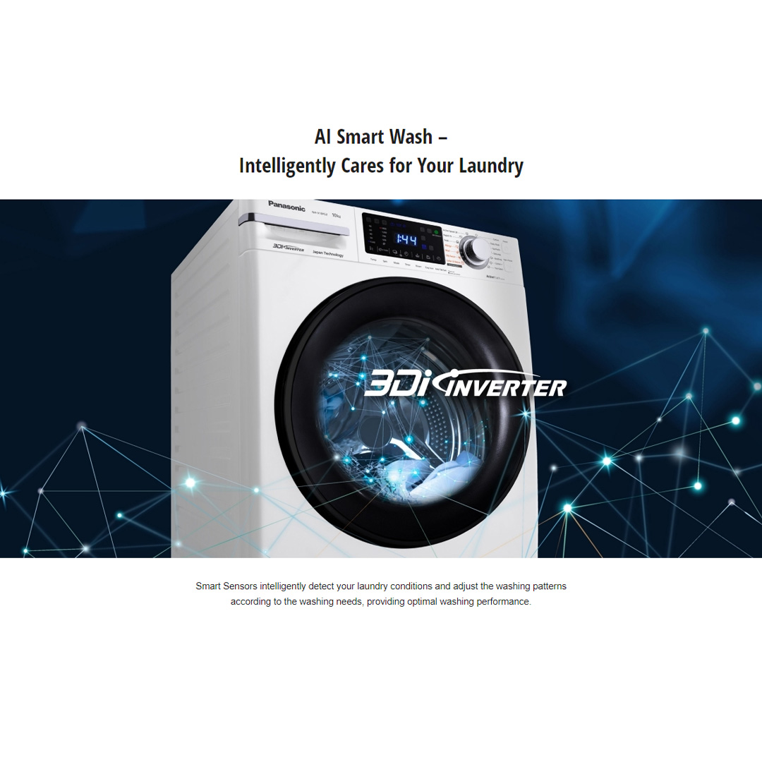 Panasonic 10KG Front Load ECONAVI Inverter Washing Machine NA-V10FG2WMY | Active Speed Wash | 3D Sensor | Auto Restart | Child Lock | Daily Wash | Washing Machines with 1 Year Warranty