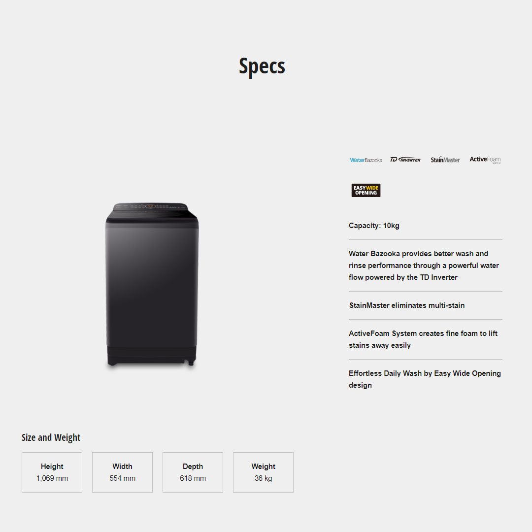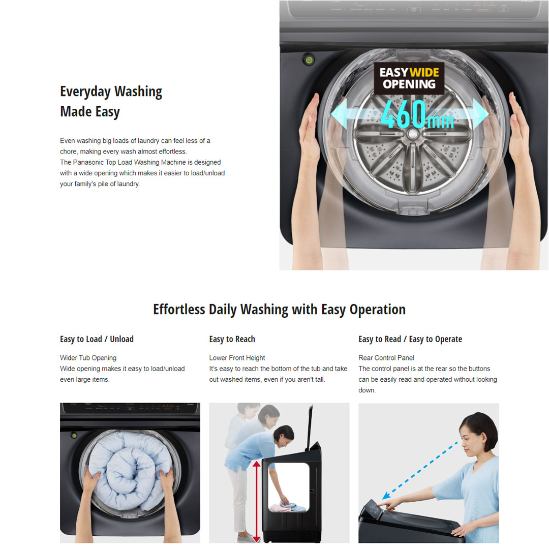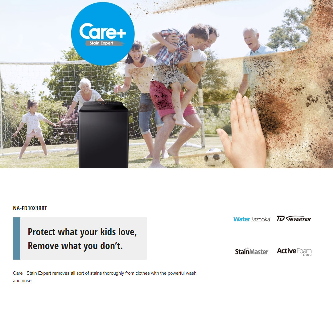 Panasonic 10KG Top Load Care+ Stain Expert TD Inverter Washing Machine NA-FD10X1BRT | Child Lock | Auto Power Off | Delay Start | Tangle Care | Baby Care | Delicate | Washing Machine with 2 Year Warranty