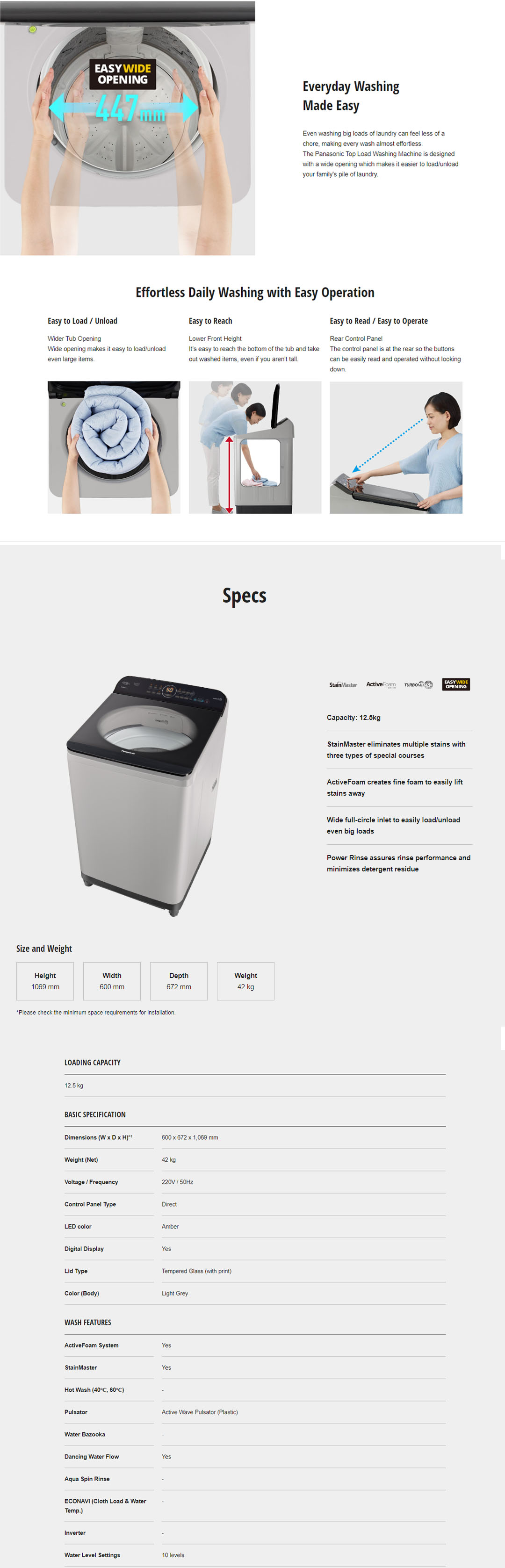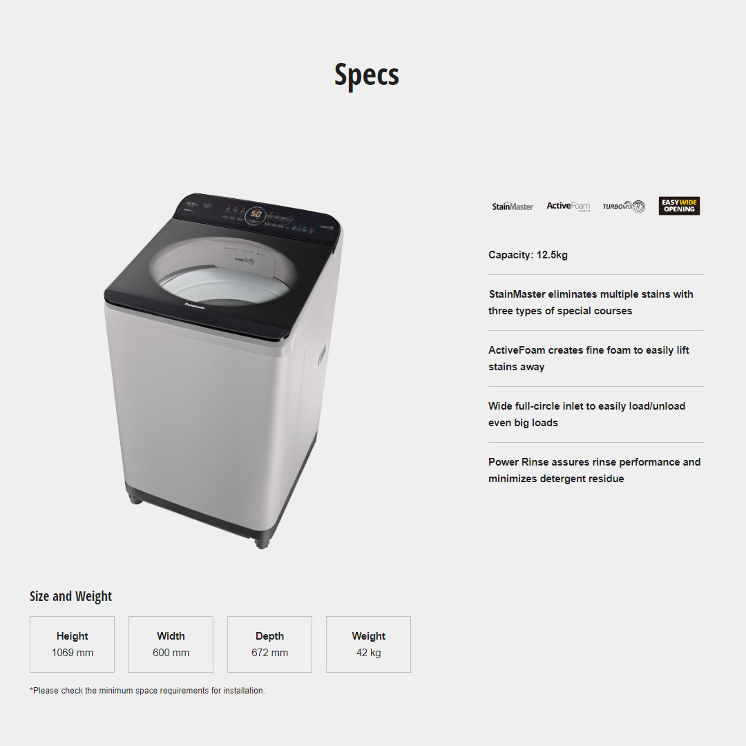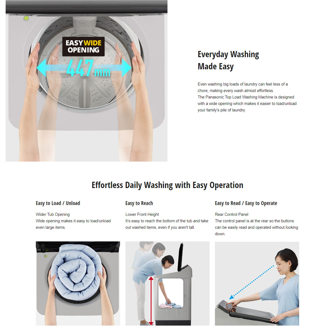 Panasonic 12.5KG Top Load Stain Care Washing Machine NA-F12AR1HRT | Delay Start | Auto Restart | Child Lock | Soft Closing | Tub Hygiene | Speedy | Auto Power Off | Power Rinse | Washing Machine with 2 Year Warranty
