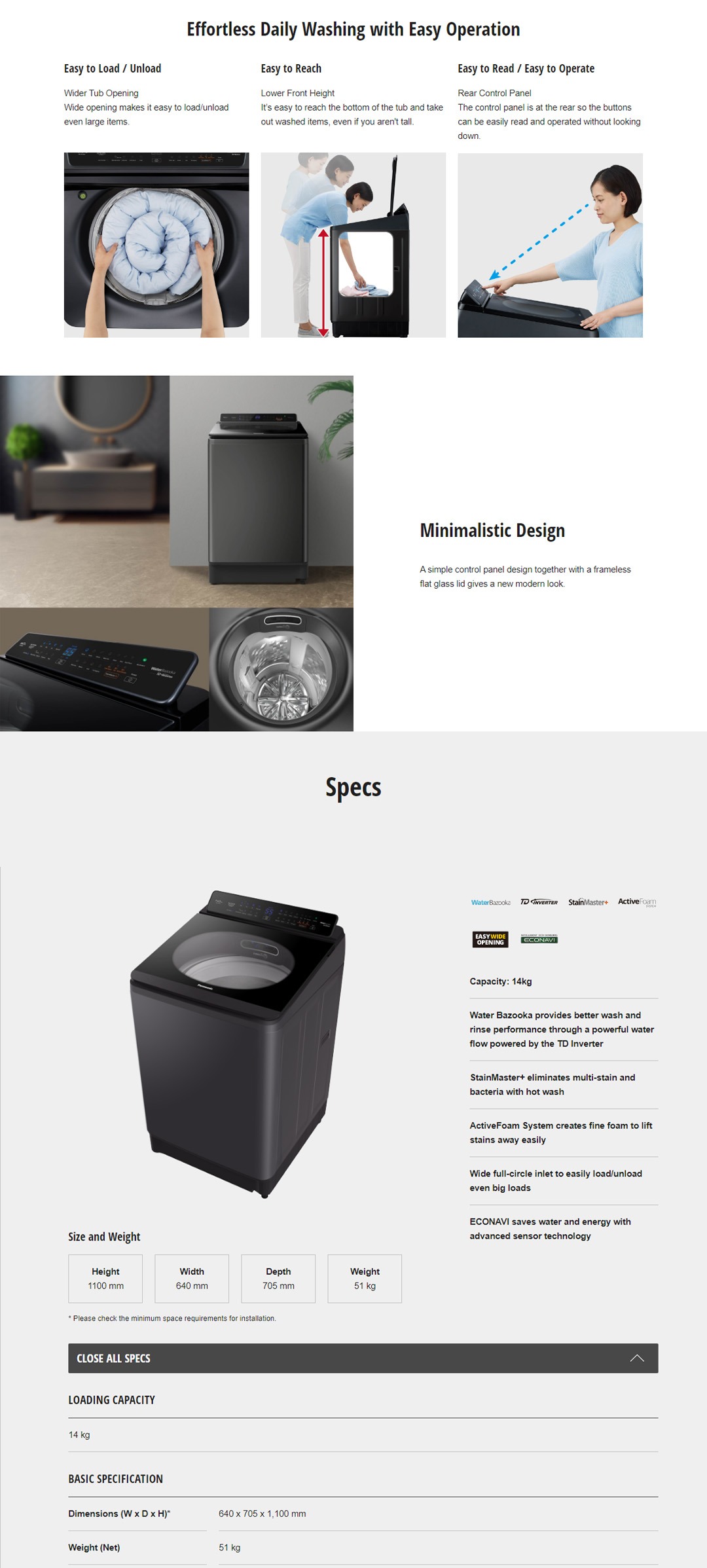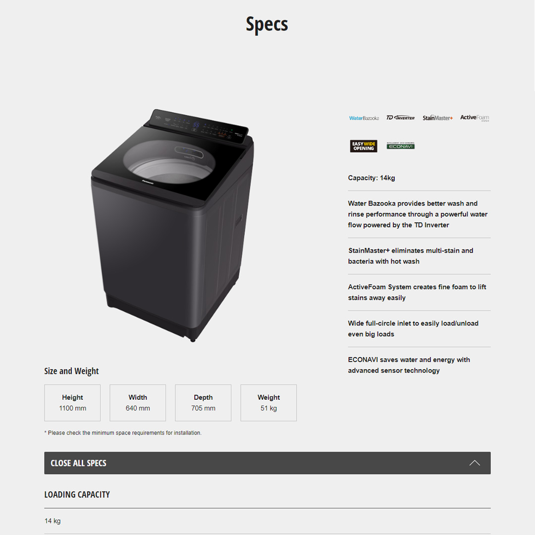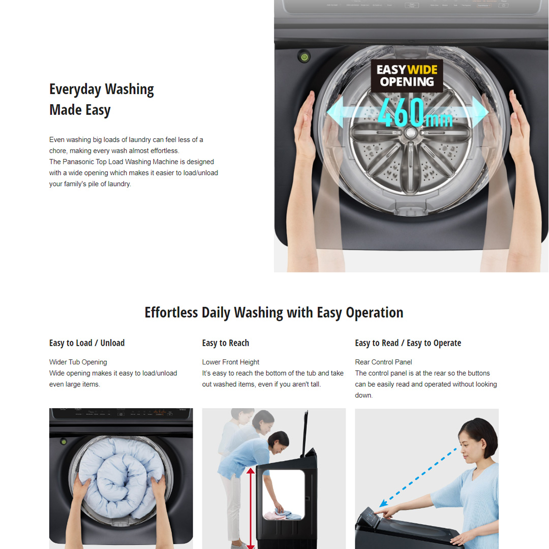Panasonic 14KG Top Load Hot Wash TD Inverter Washing Machine NA-FD14V1BRT | Multi-Stain Removal | Bacteria Elimination | Deep Clean | Child Lock with LED | Strong Water Flow | Washing Machine with 1 Year Warranty