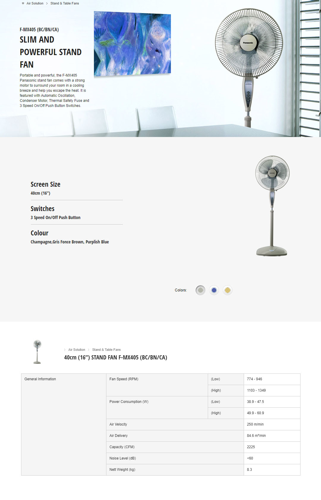 Panasonic 16" Stand Fan F-MX405 | 3 Speed Selection Features | Superior Reachability | Thermal Safety Fuse | Stand Fan with 1 Year Warranty
