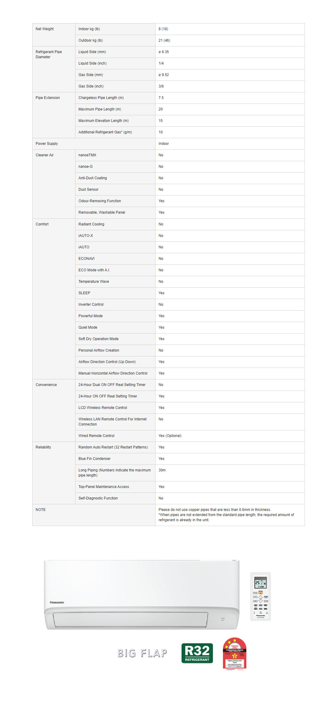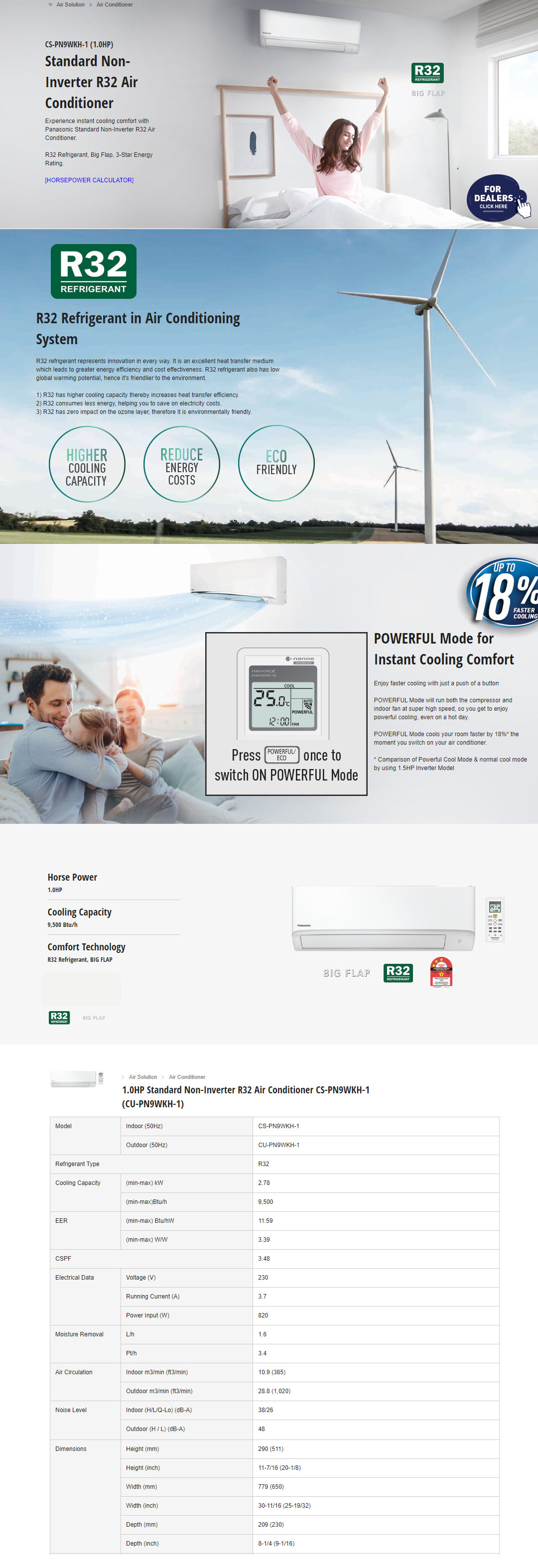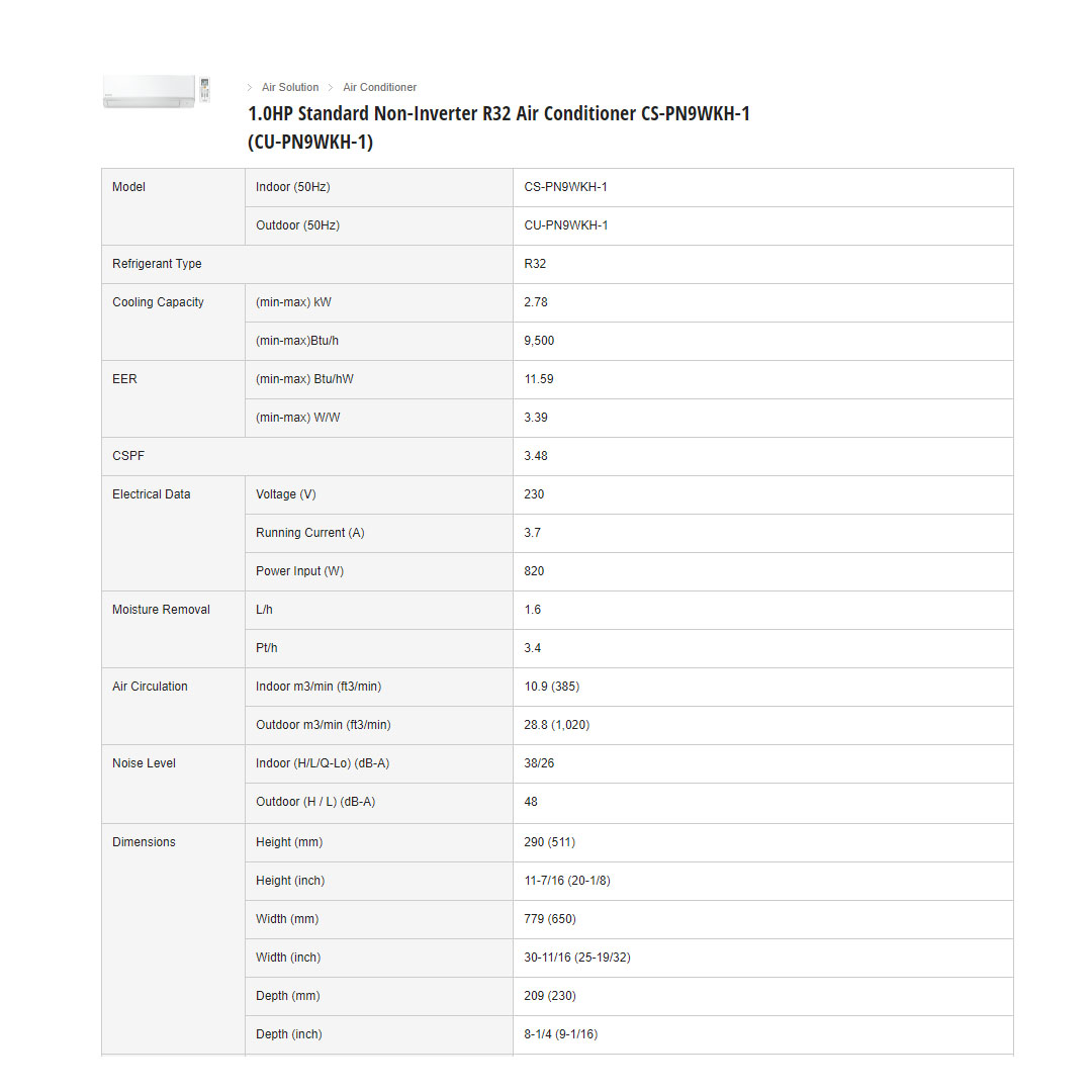 Panasonic 1HP R32 Wall Mount Non-Inverter Air Conditioner CS-PN9WKH-1 / CU-PN9WKH-1 | Higher Cooling Capacity | Reduce Energy Costs | Eco Friendly | Air Conditioner with 1 Year Warranty