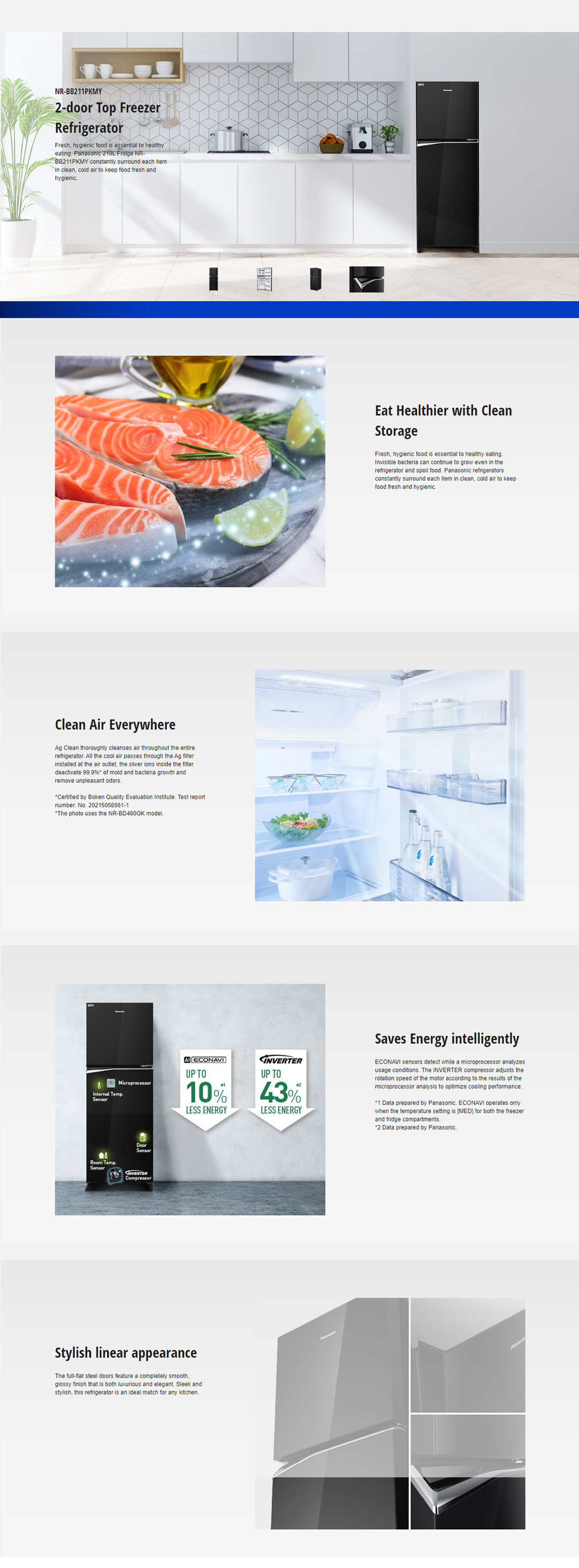 Panasonic 210L 2 Doors Top Mount Inverter Refrigerator with AI ECONAVI NR-BB211PK | Eat Healthier with Fresh,Clean Storage | Clean Air for Your Food | Stylish Linear Appearance | Refrigerator With 1 Year Warranty