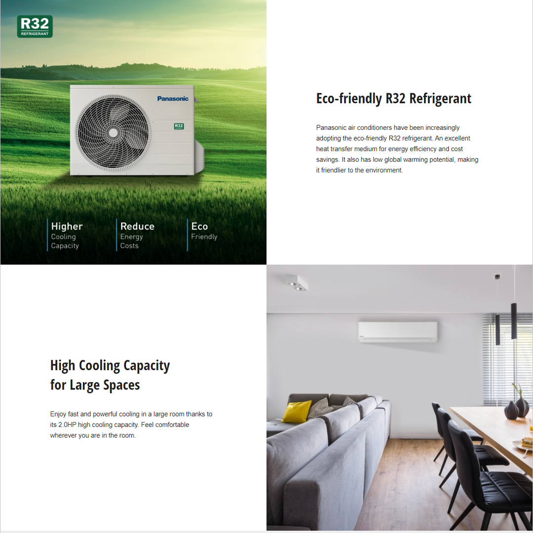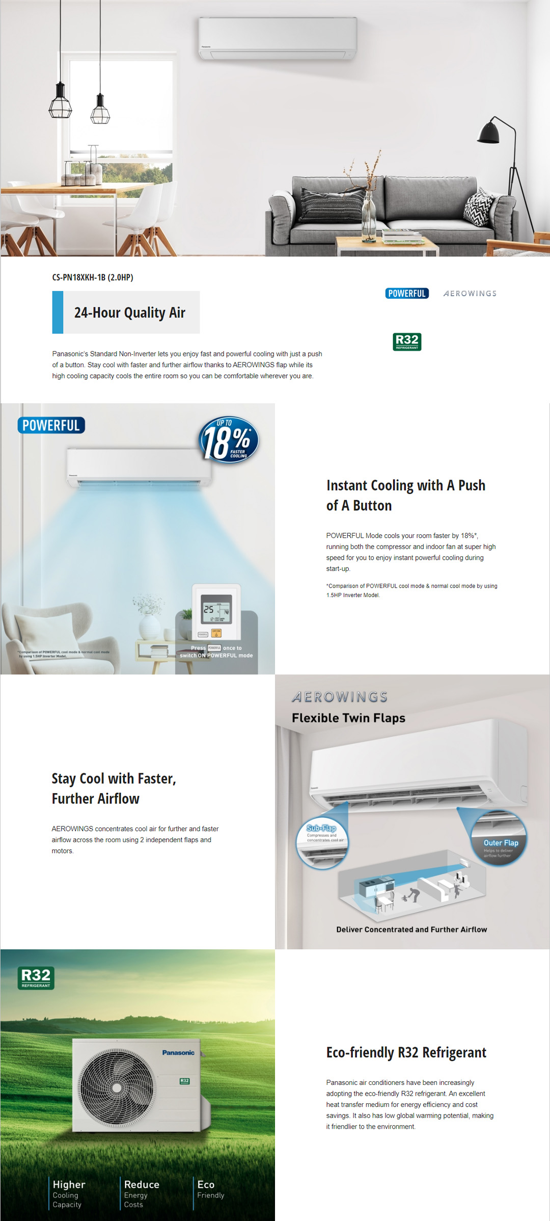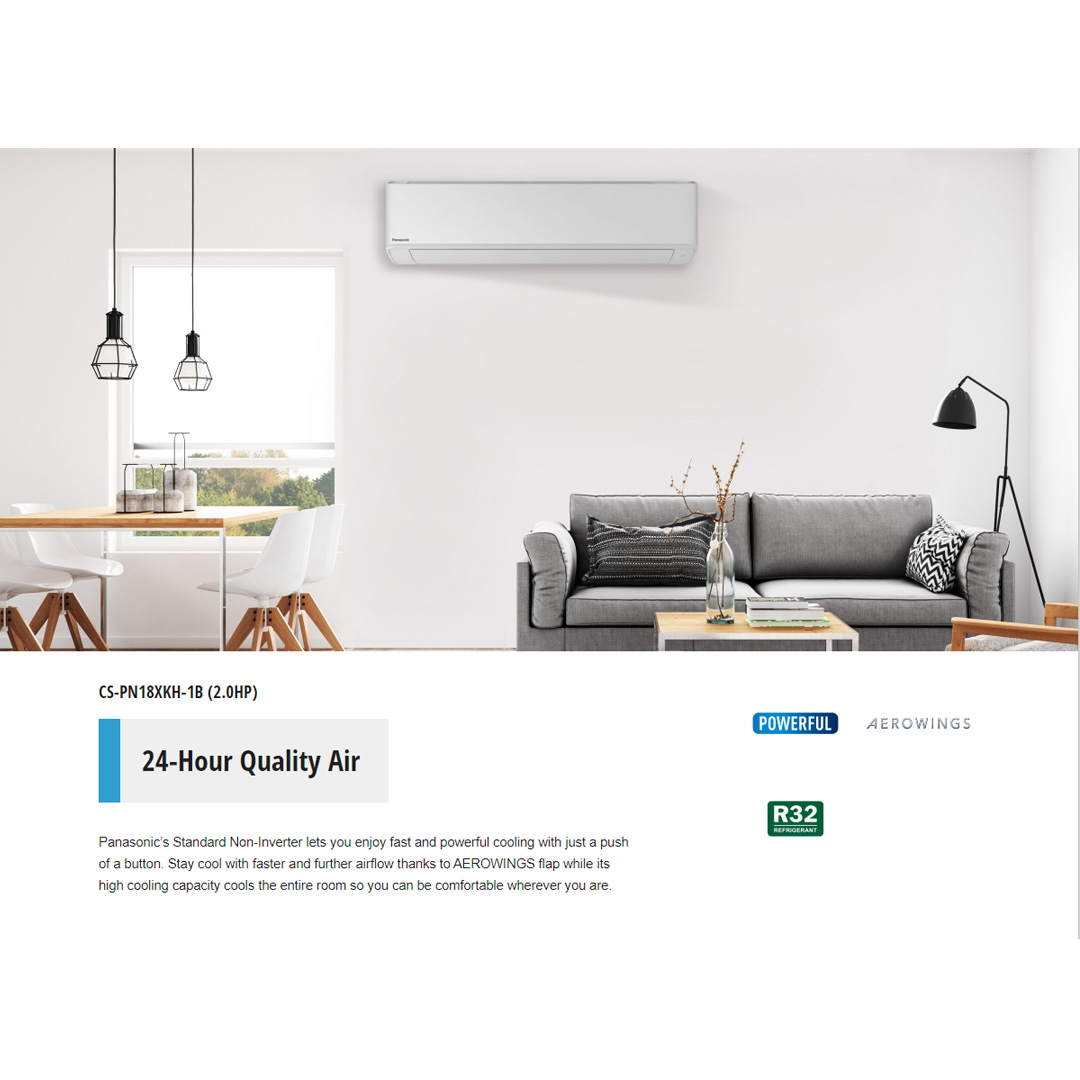 Panasonic 2HP R32 Wall Mount Non-Inverter Air Conditioner CS-PN18XKH-1B / CU-PN18XKH-1 | Sleep Mode | Powerful Mood | Quiet Mode | LCD Wireless Remote Control | Air Conditioner with 1 Year Warranty