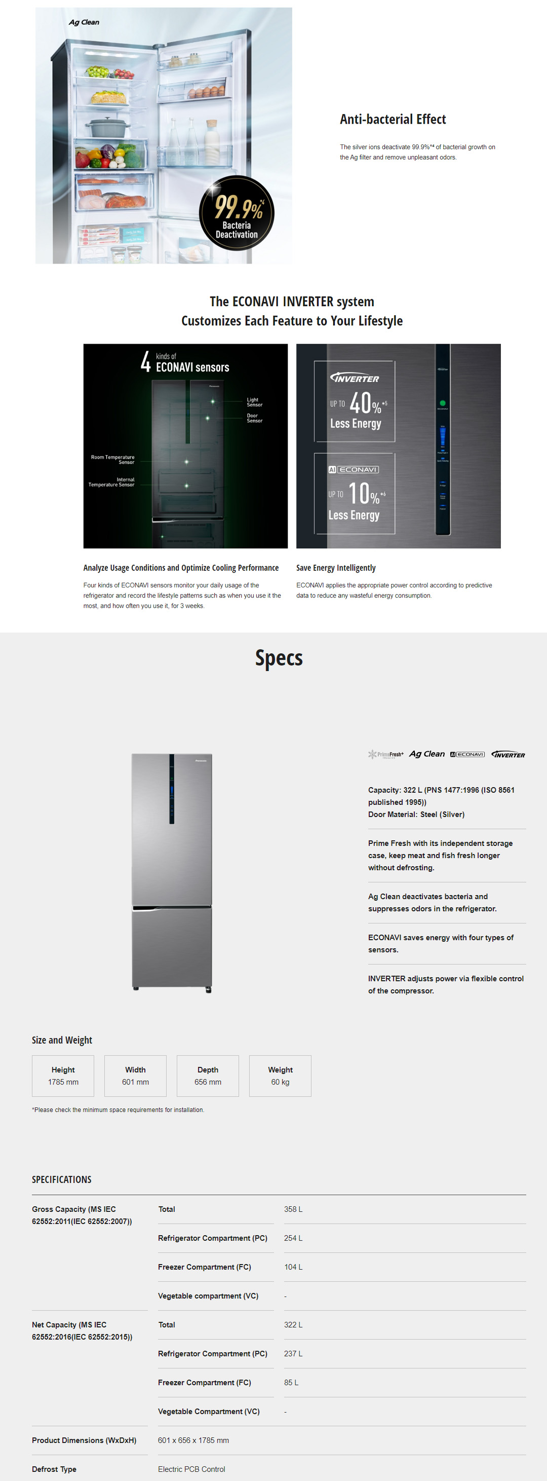 Panasonic 358L 2 Doors Top Mount Inverter Refrigerator with AI ECONAVI NR-BC360XS | Prime Fresh+ Keeps Food Fresh with Faster Soft Freezing | Cook Healthy Meals Every Day with Prime Fresh+ | Anti-bacterial Effect | Refrigerator With 1 Year Warranty
