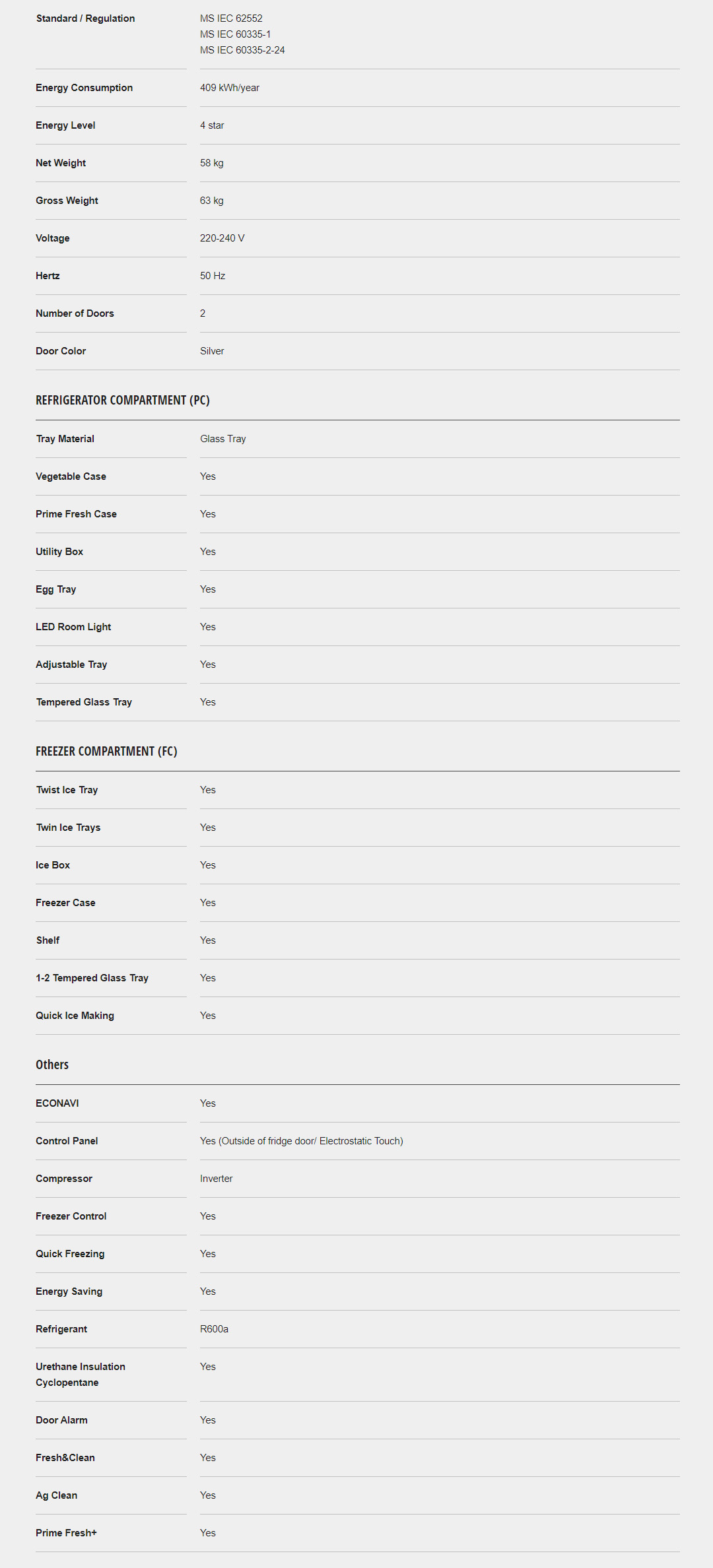 • Prime Fresh+ Keeps Food Fresh with Faster Soft Freezing