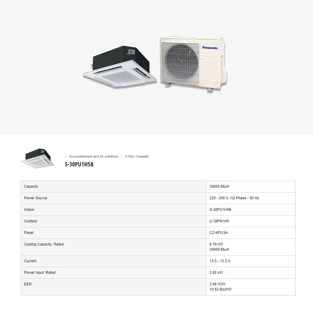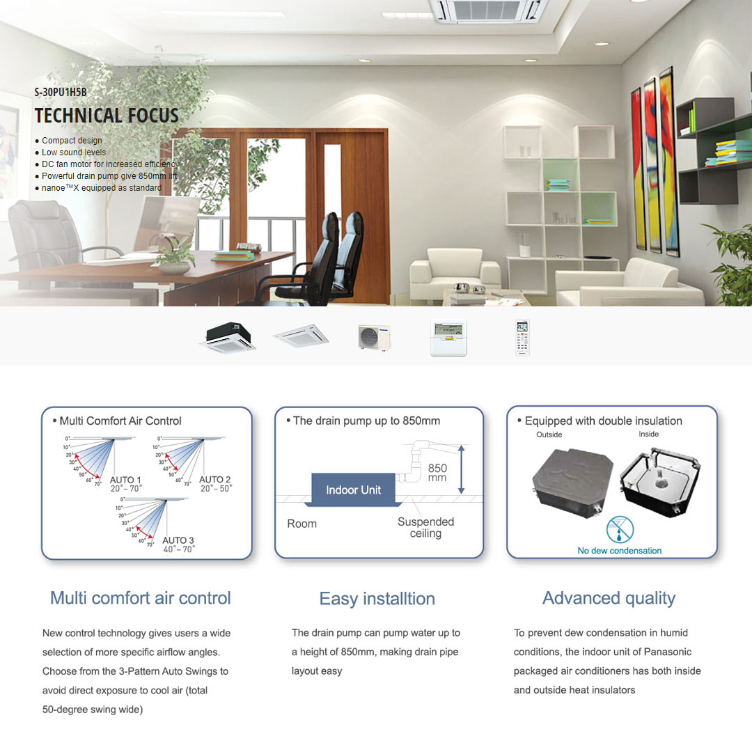 Panasonic 3HP R32 4 Way Ceiling Cassette Non-Inverter Air Conditioner S-30PU1H5B-1 / U-30PN1H5-1 | Low Sound Levels | Multi Comfort Air Control | Advanced Quality | Air Conditioners with 1 Year Warranty