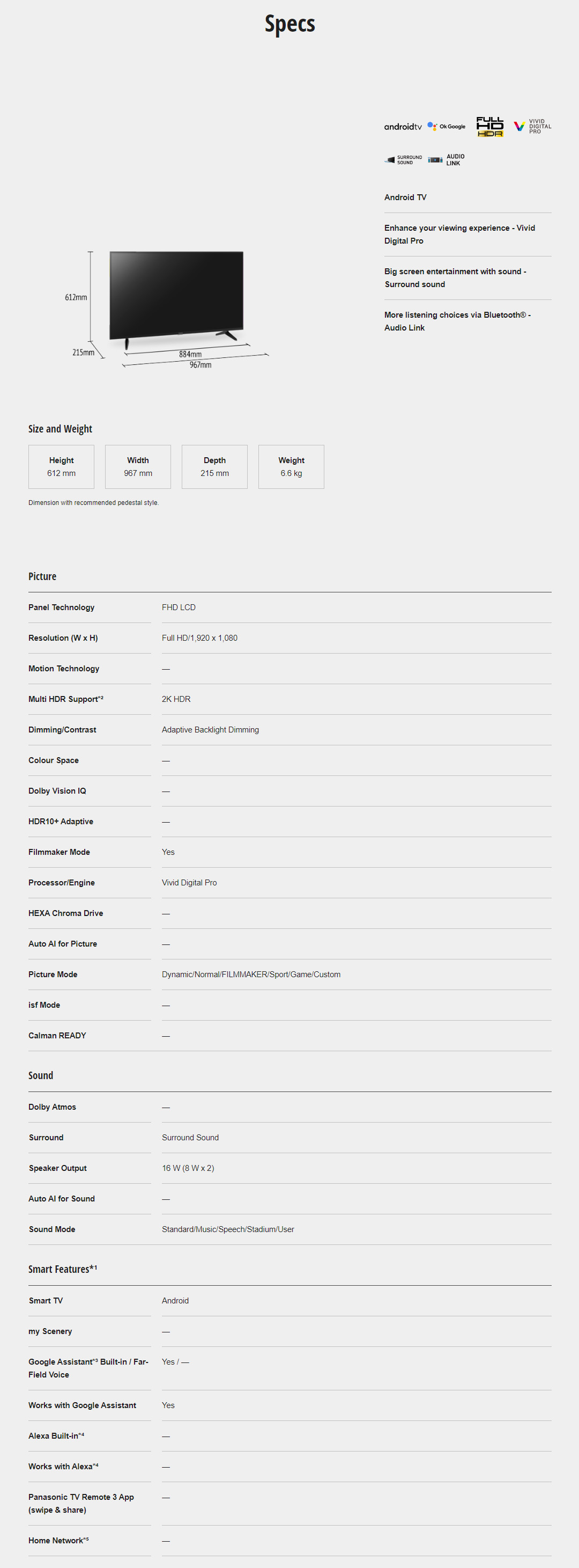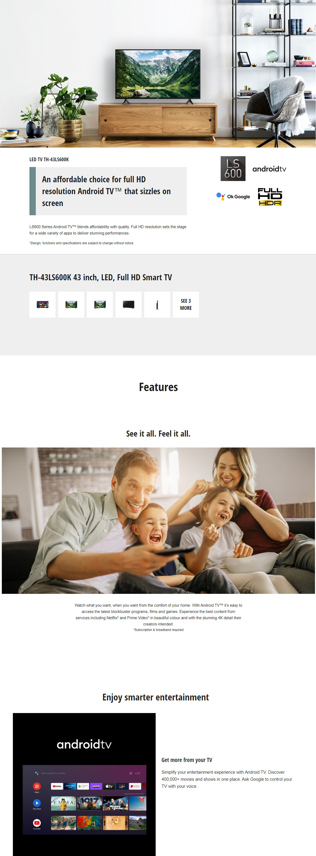 Panasonic 43" FHD Smart LED TV TH-43LS600K | Vivid Digital Pro | Enjoy Smarter Entertainment | Big screen entertainment with sound - Surround sound | Smart TV with 1 Year Warranty