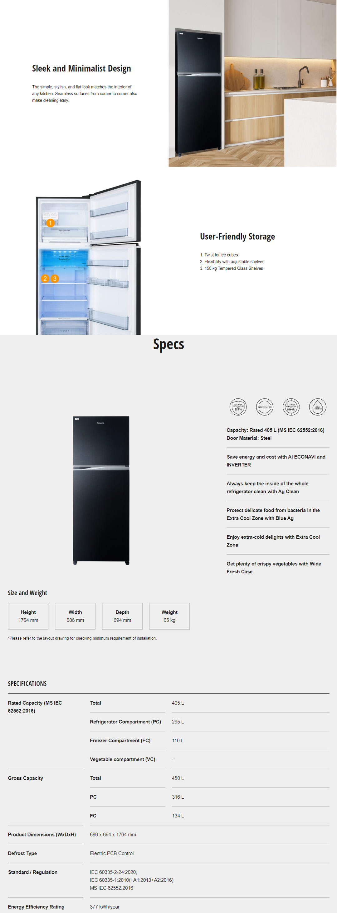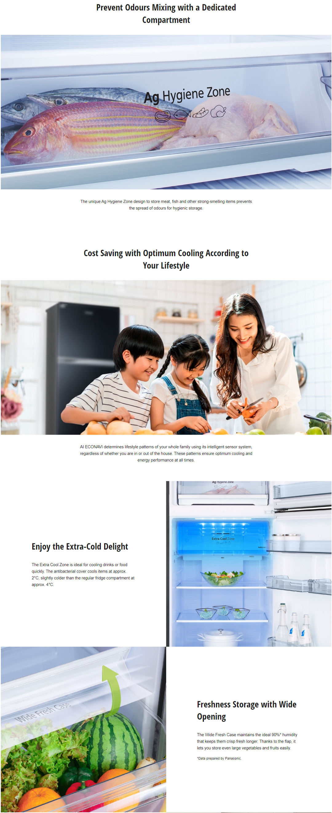 Panasonic 450L 2 Doors Top Mount Inverter Refrigerator with AI ECONAVI NR-TX461CPKM | Hygienic Storage With Blue Ag | Clean Air Surrounds Your Food | Enjoy The Extra-Cold Delight | Freshness Storage With Wide Opening | Refrigerator With 1 Year Warranty