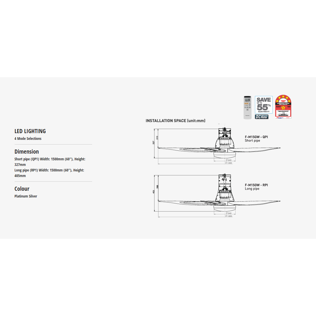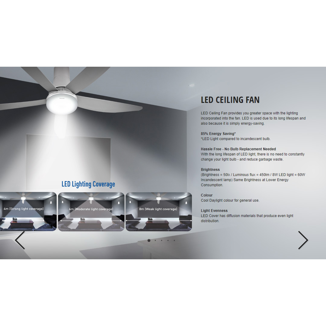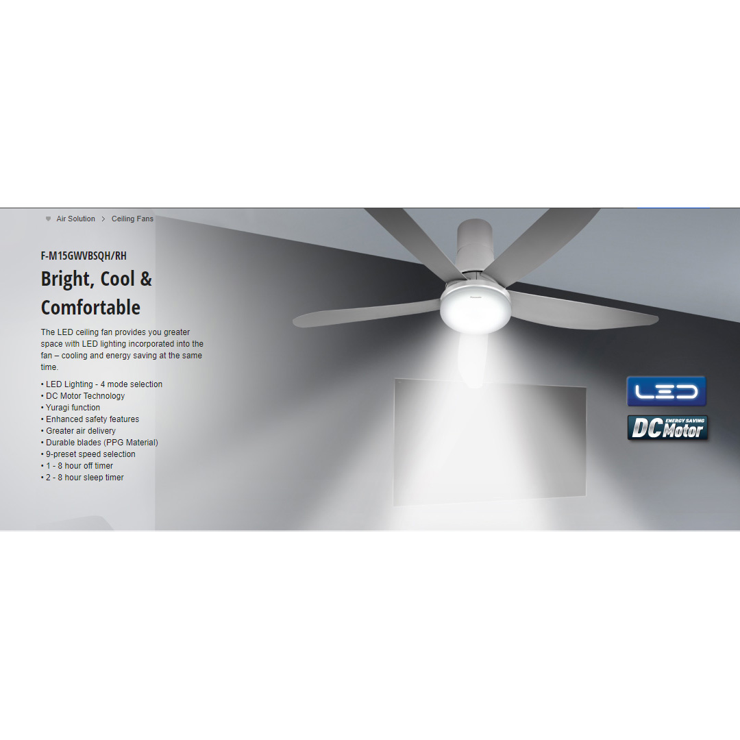 Panasonic 60" LED 5 Blades DC Motor Ceiling Fan F-M15GWVBSRH | LED Lighting - 4 Mode Selection | DC Motor Technology | Enhanced Safety Features | Greater Air Delivery | Durable Blades | Ceiling Fan with 1 Year Warranty