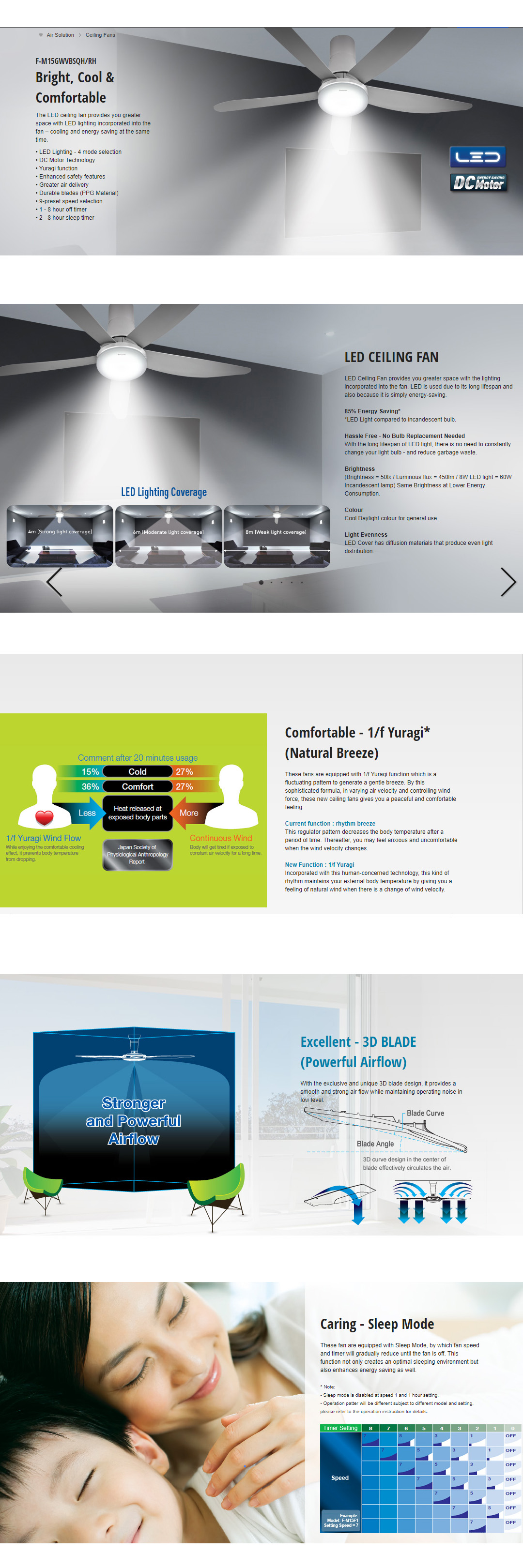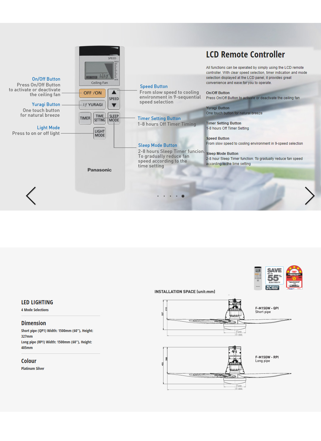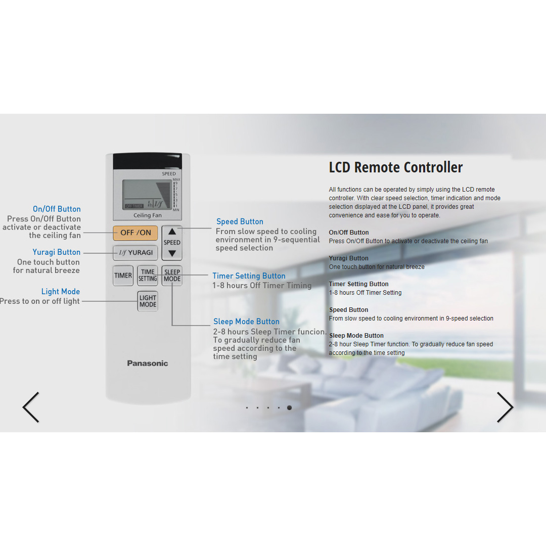 Panasonic 60" LED 5 Blades DC Motor Ceiling Fan F-M15GWVBSRH | LED Lighting - 4 Mode Selection | DC Motor Technology | Enhanced Safety Features | Greater Air Delivery | Durable Blades | Ceiling Fan with 1 Year Warranty