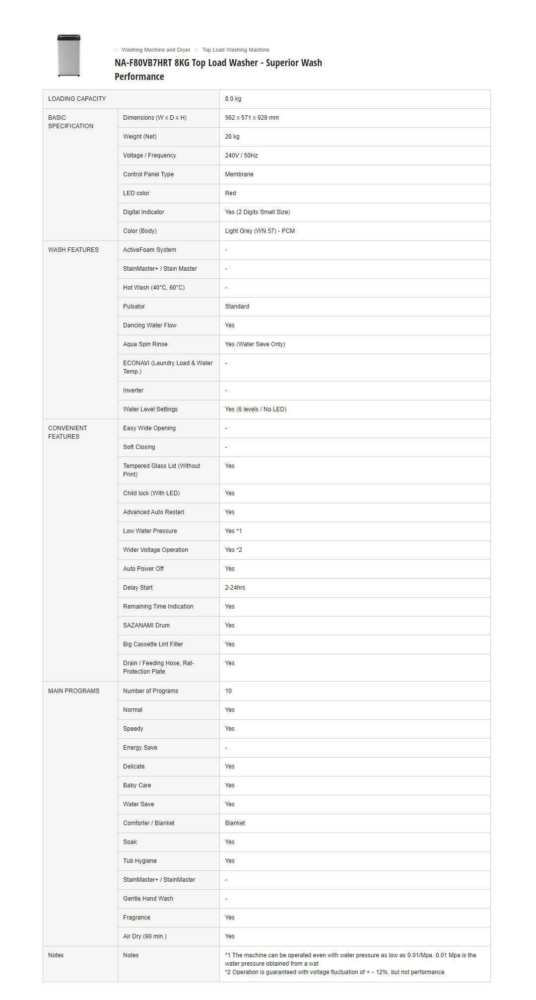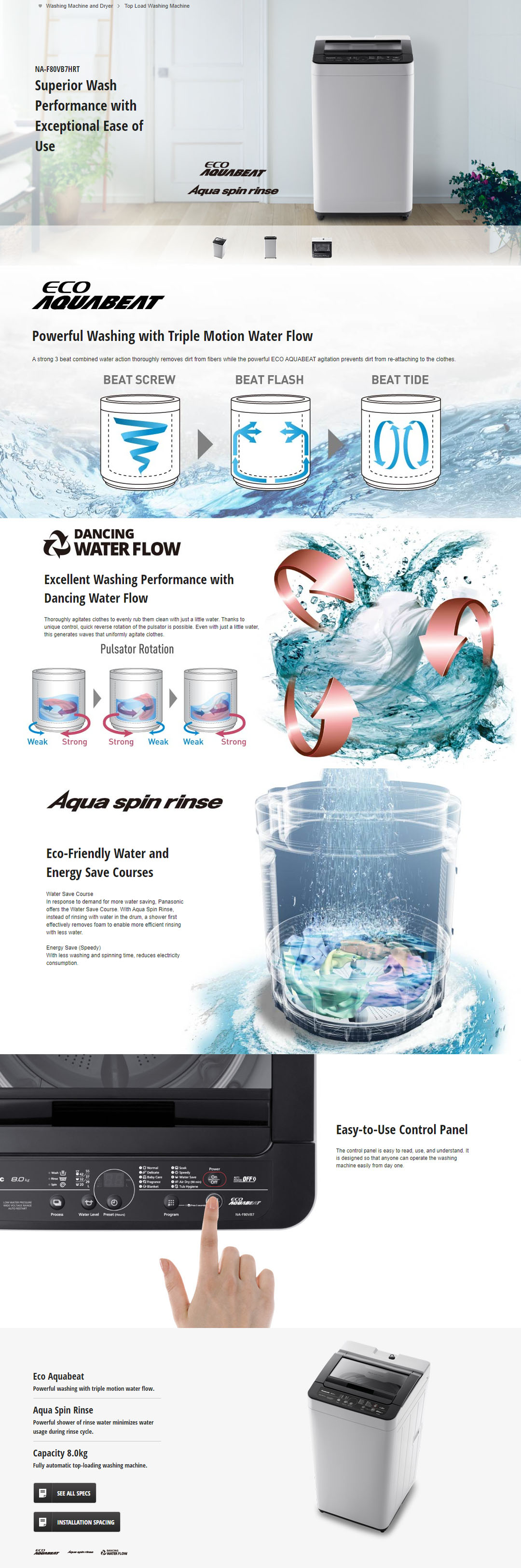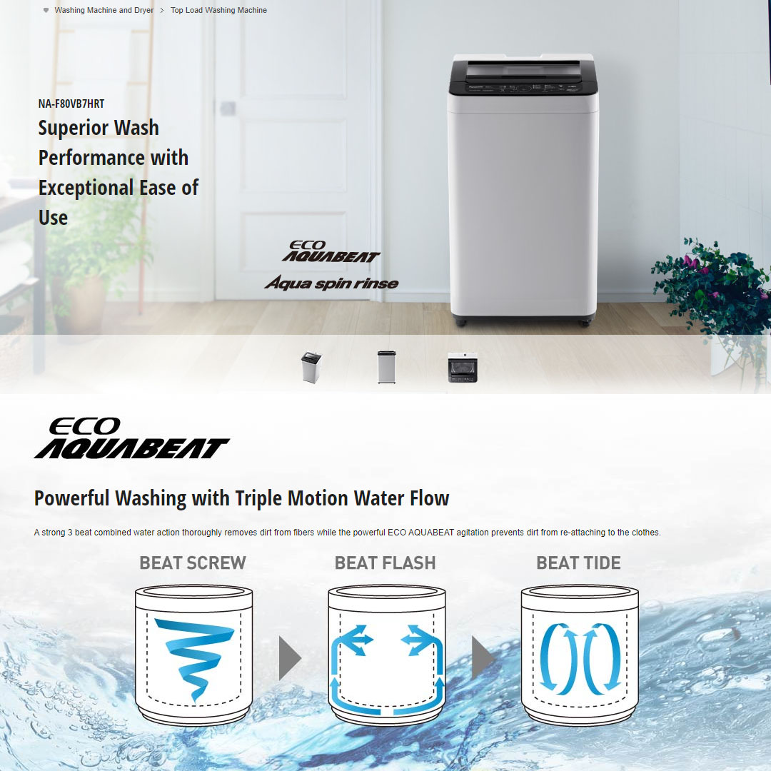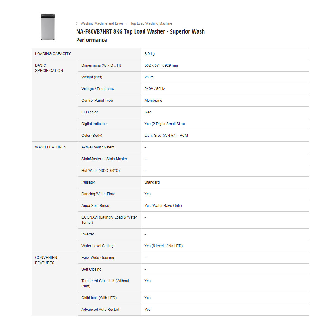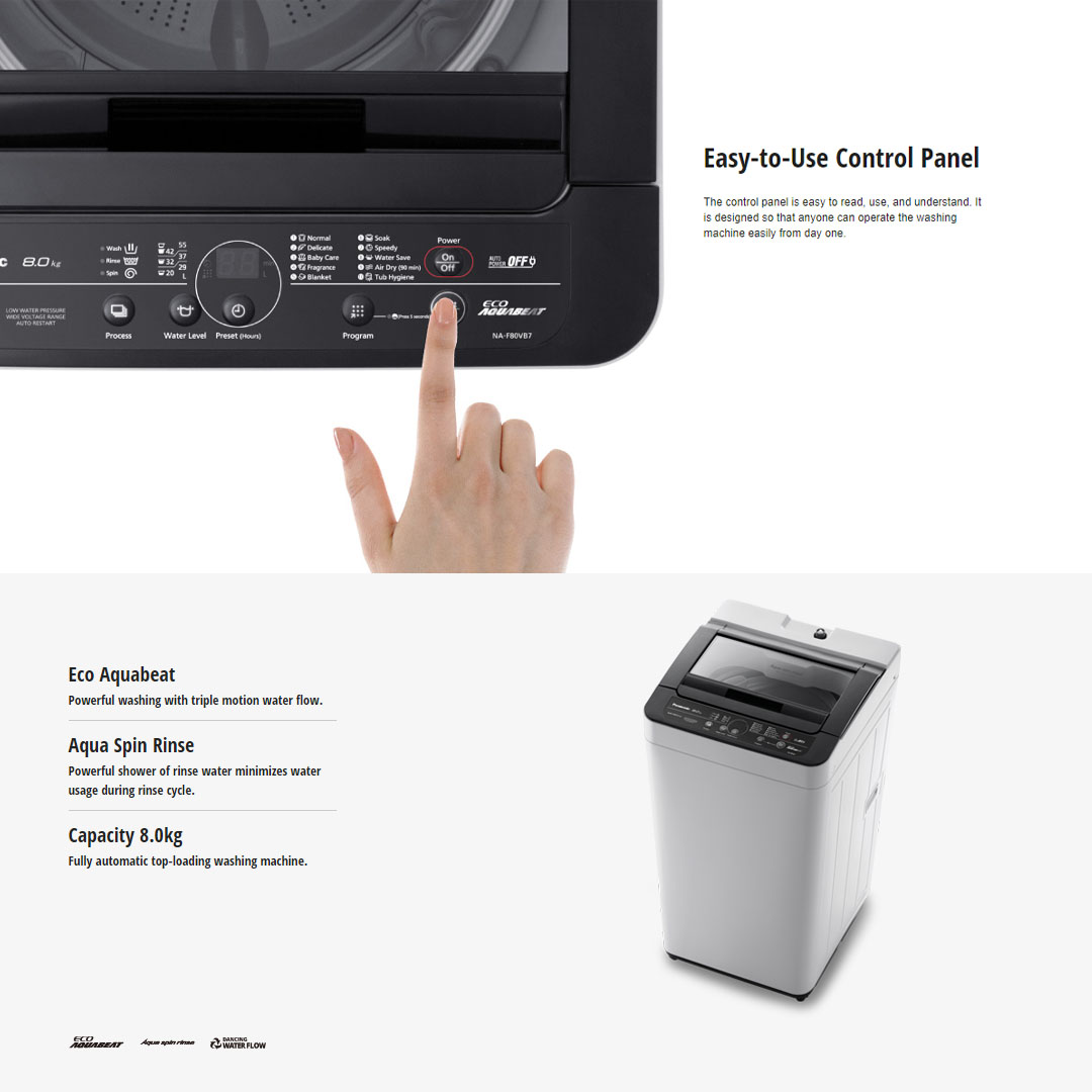 Panasonic 8KG Top Load Washing Machine NA-F80VB7HRT | Energy Save | Water Save Course | Child Lock | Washing Machines with 1 Year Warranty