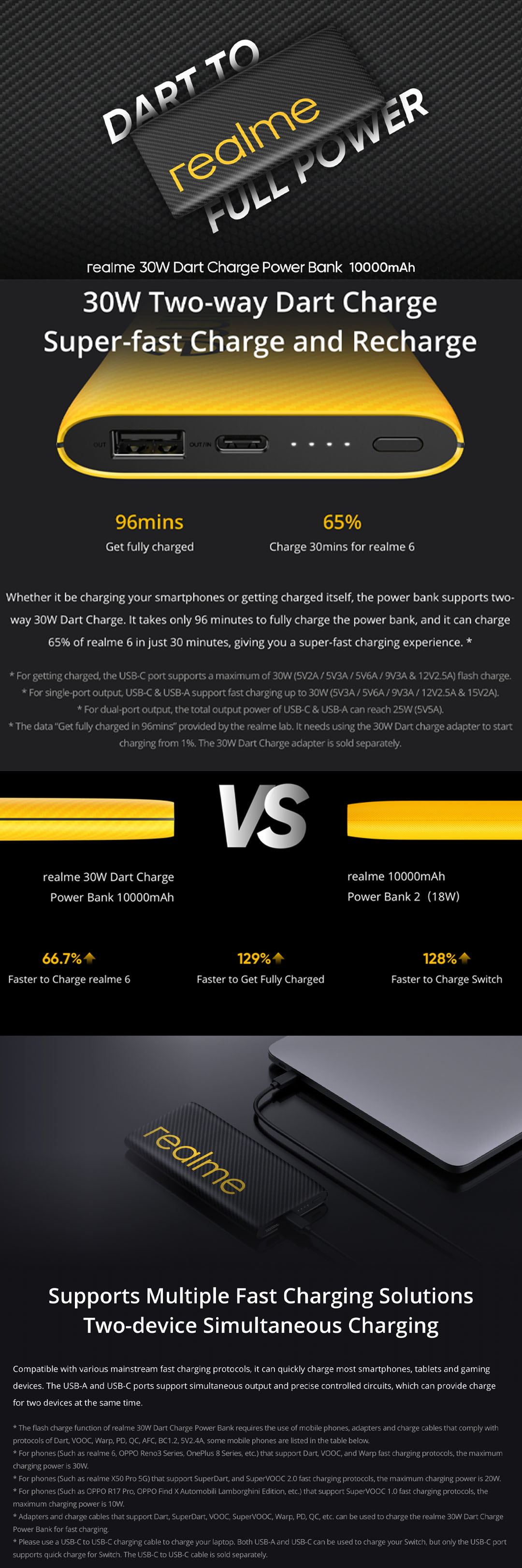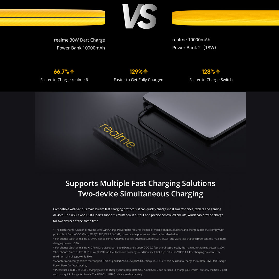 realme 10000mAh Power Bank 3 Pro Dart Charge 33W RTX2109 | 33W Two-Way Dart Charge | Support Multiple Charging Protocols | Dual Output Port |